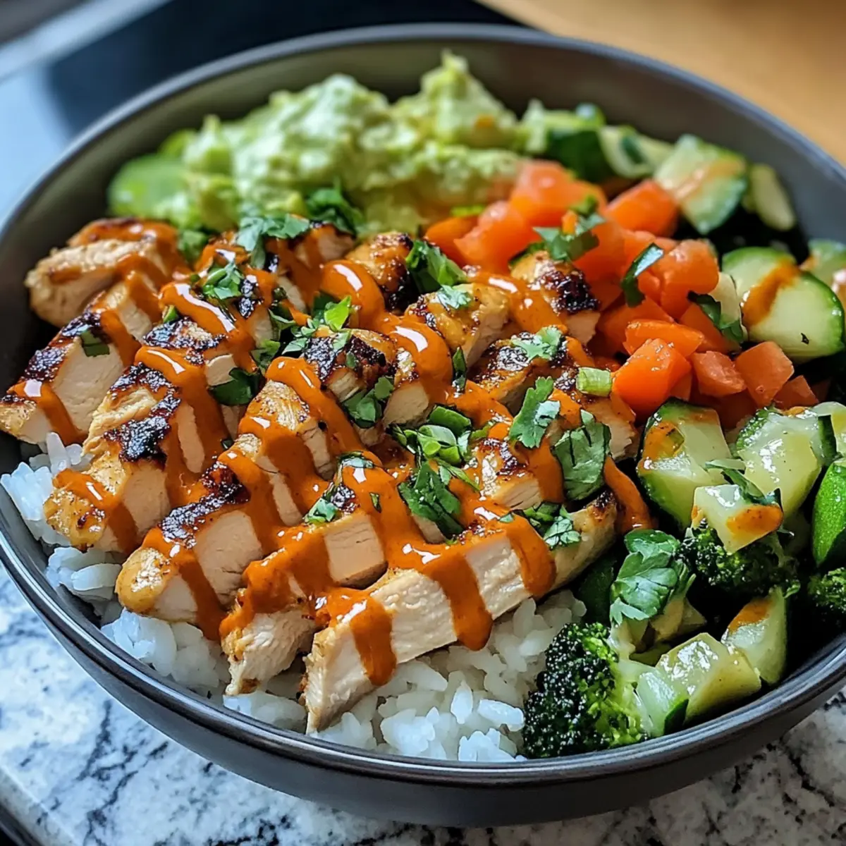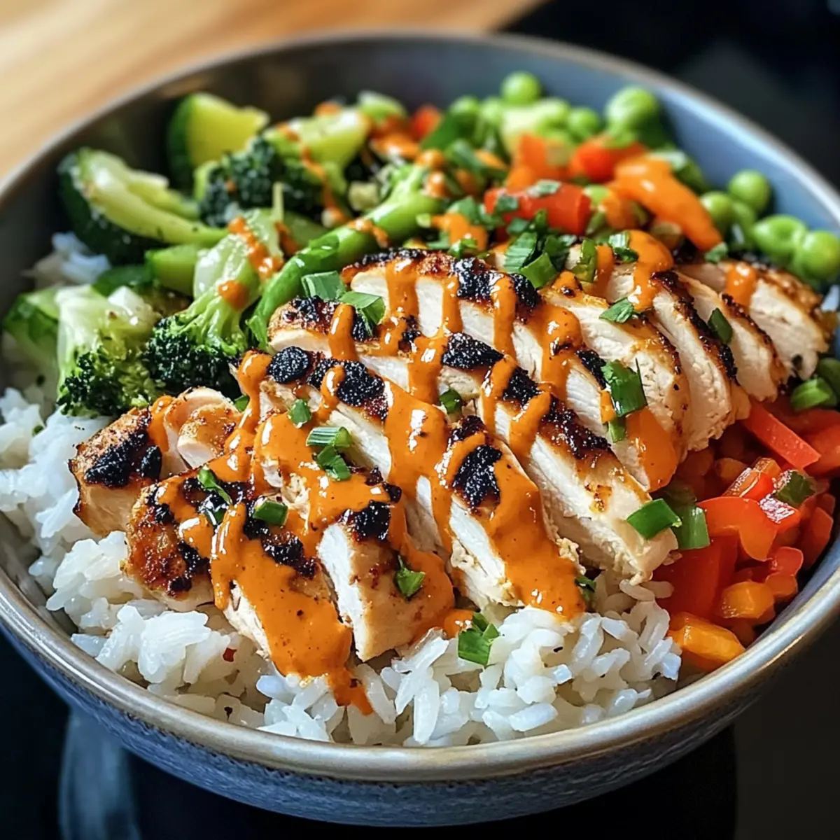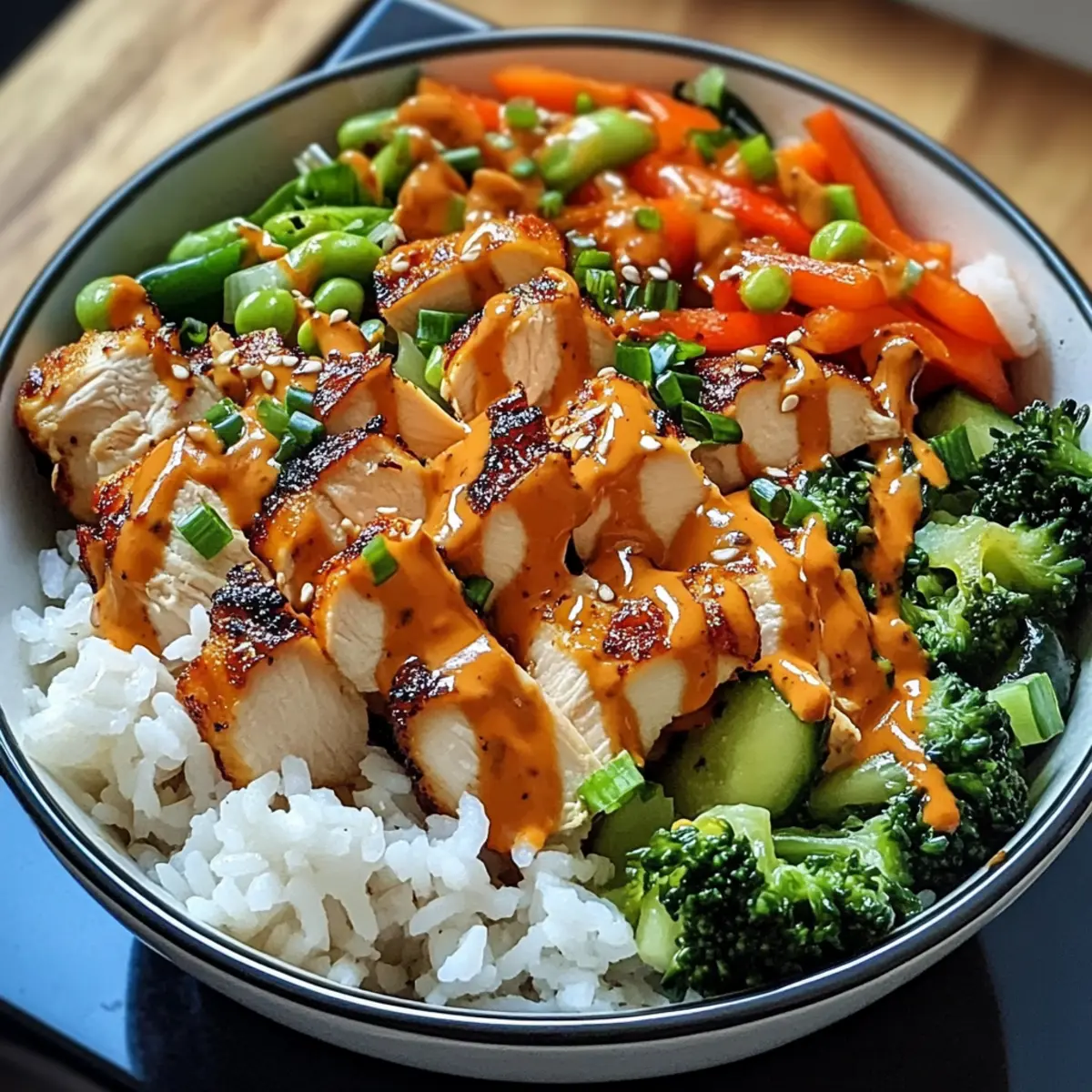 Genießen Sie das aufregende Geschmackserlebnis dieser gesunden und anpassbaren Bang Bang Hühnchen Schüssel!