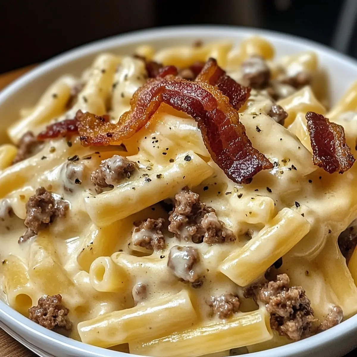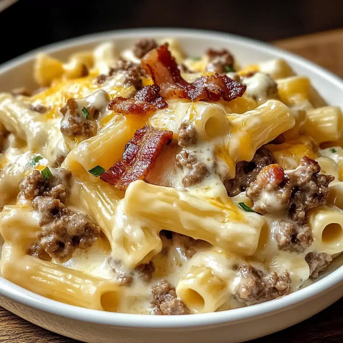 Mit diesen Zutaten wirst du die beliebte Loaded Bacon Cheeseburger Alfredo Pasta zubereiten, die ein echtes Komfortgericht ist!