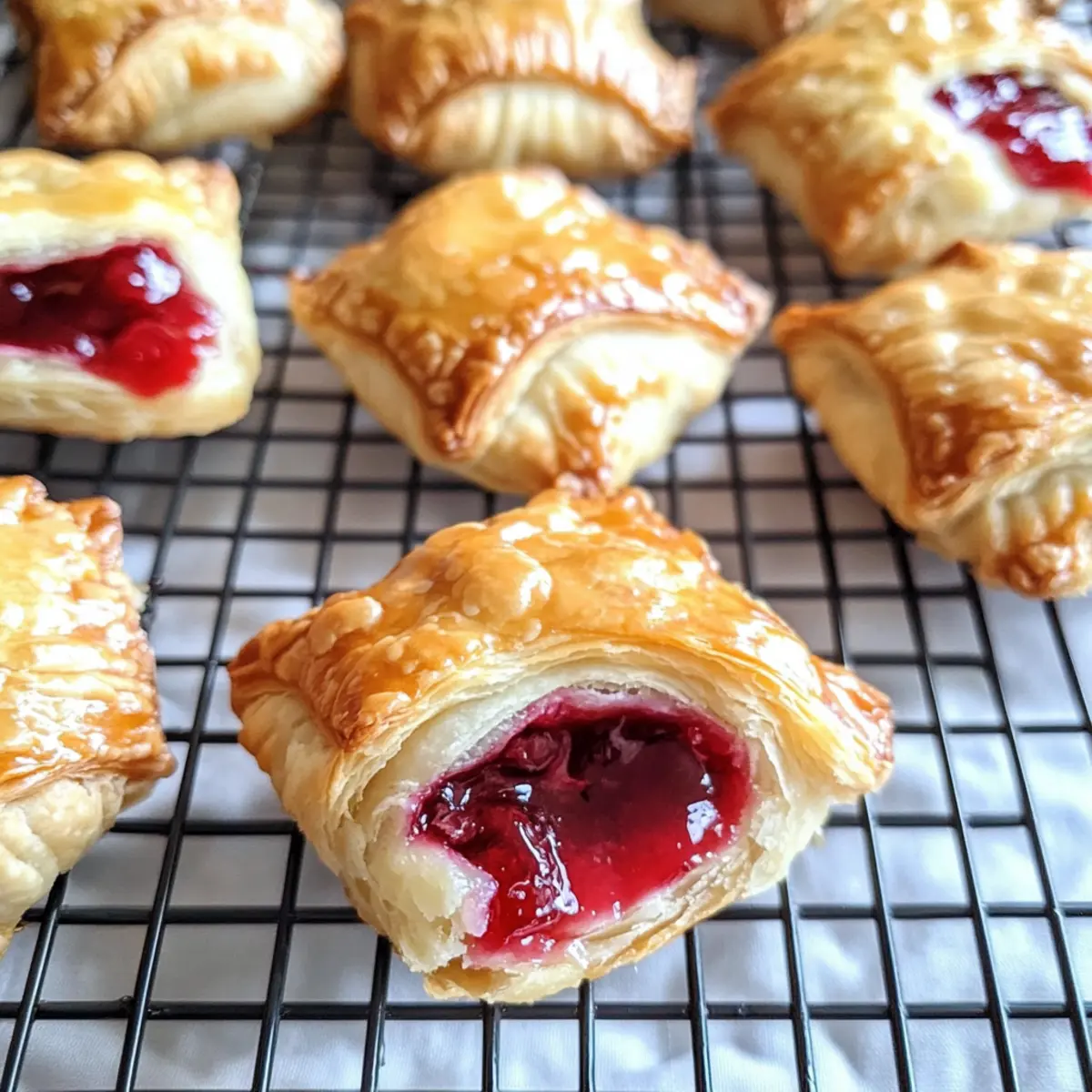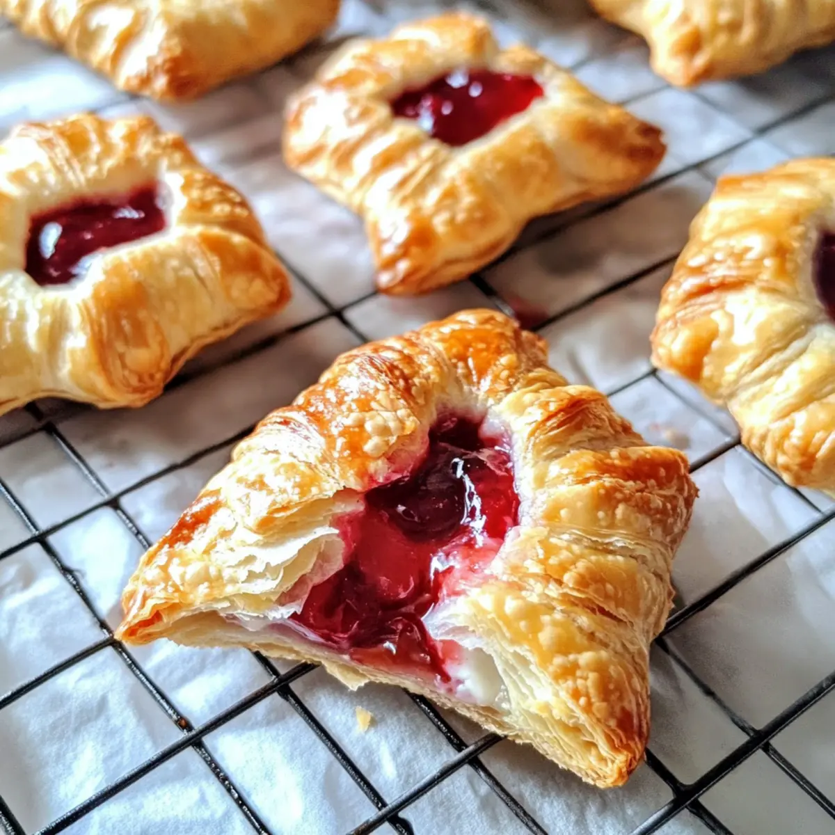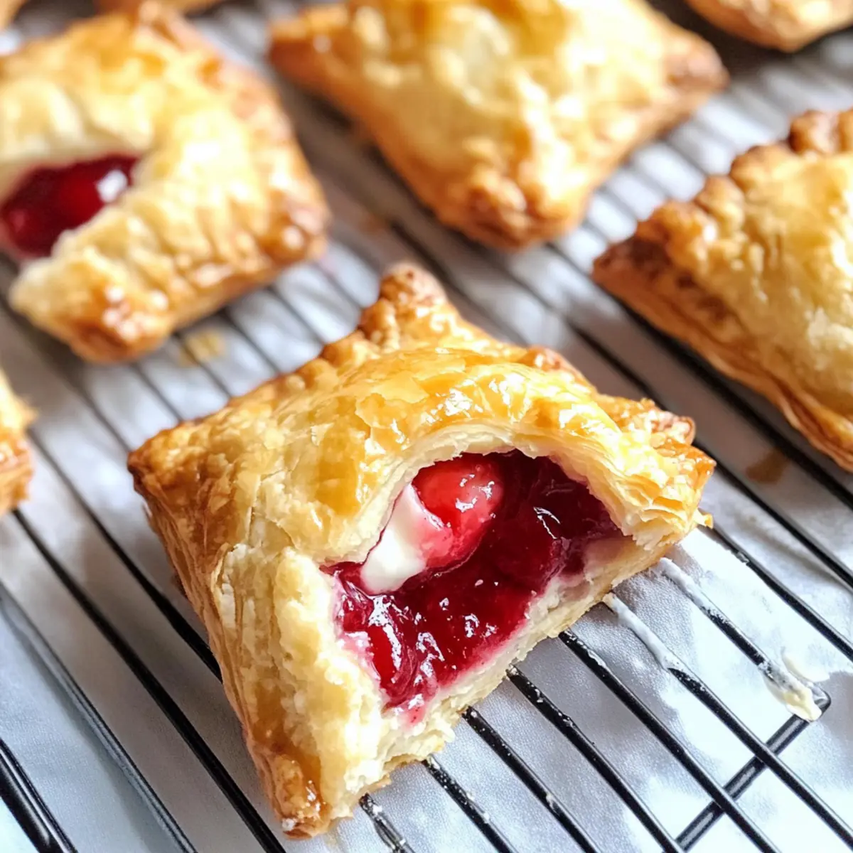 Einfachheit ist der Schlüssel: Mit minimalem Aufwand zauberst du diese köstlichen Leckereien aus fertigem Blätterteig – perfekt, wenn du wenig Zeit hast. Vielfalt der Füllungen: Experimentiere mit verschiedenen Früchten wie Himbeeren oder Äpfeln, damit jedes Mal eine neue Überraschung auf deinen Tisch kommt. Aromatischer Genuss entfaltet sich mit jedem Biss: Der süß-säuerliche Kirschgeschmack harmoniert wunderbar mit der cremigen Füllung. Perfekte Präsentation: Diese kleinen Kunstwerke sehen auf jedem Tisch eindrucksvoll aus – ideal für Brunches oder unvergessliche Gesellschaftsabende. Lass dich auch von unseren Tipps für den perfekten Teig und das Beste aus deiner Füllung inspirieren!