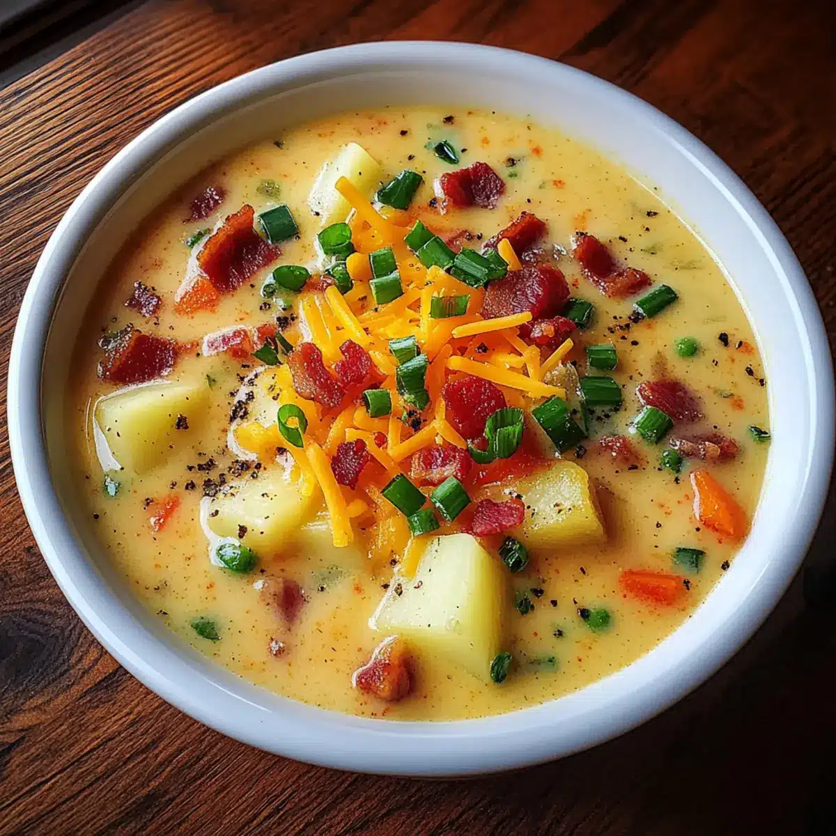 - Schmecke die Suppe ab und garniere sie nach Wunsch mit Bacon, Frühlingszwiebeln und frischer Petersilie.