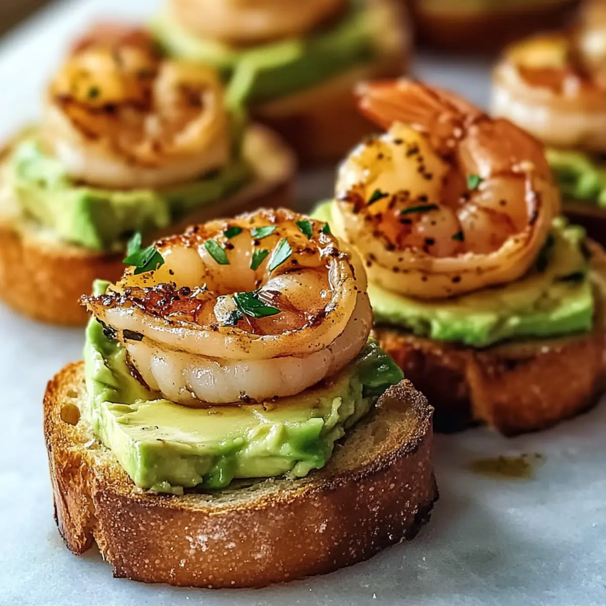 Knoblauchgarnelen-Crostini mit Avocado für Feste