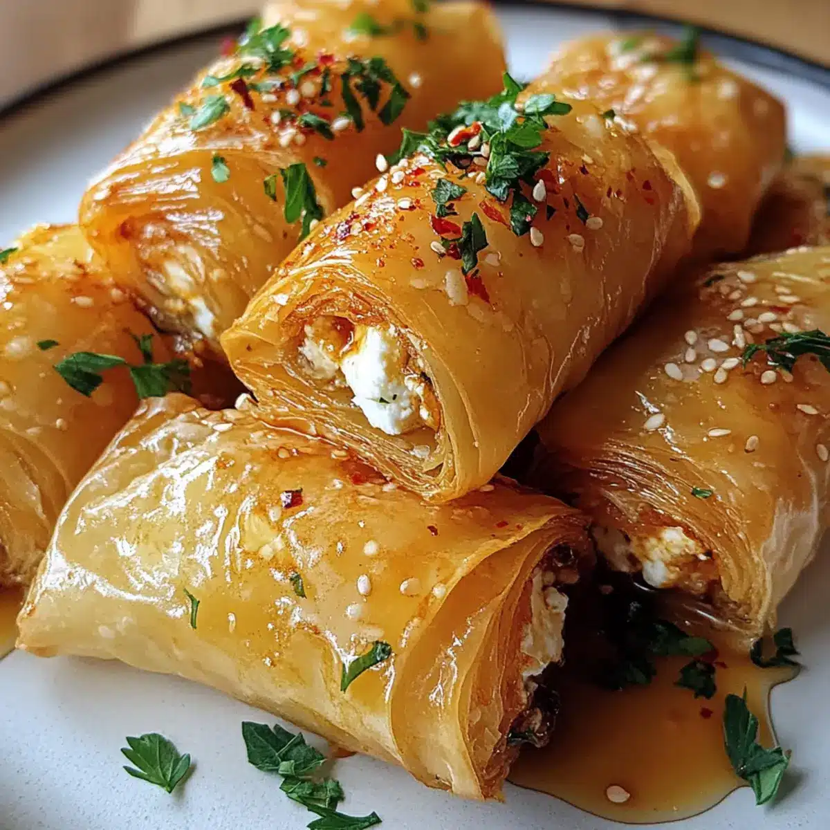 Ofen gebratene Feta-Rollen mit Chili-Honig genießen
