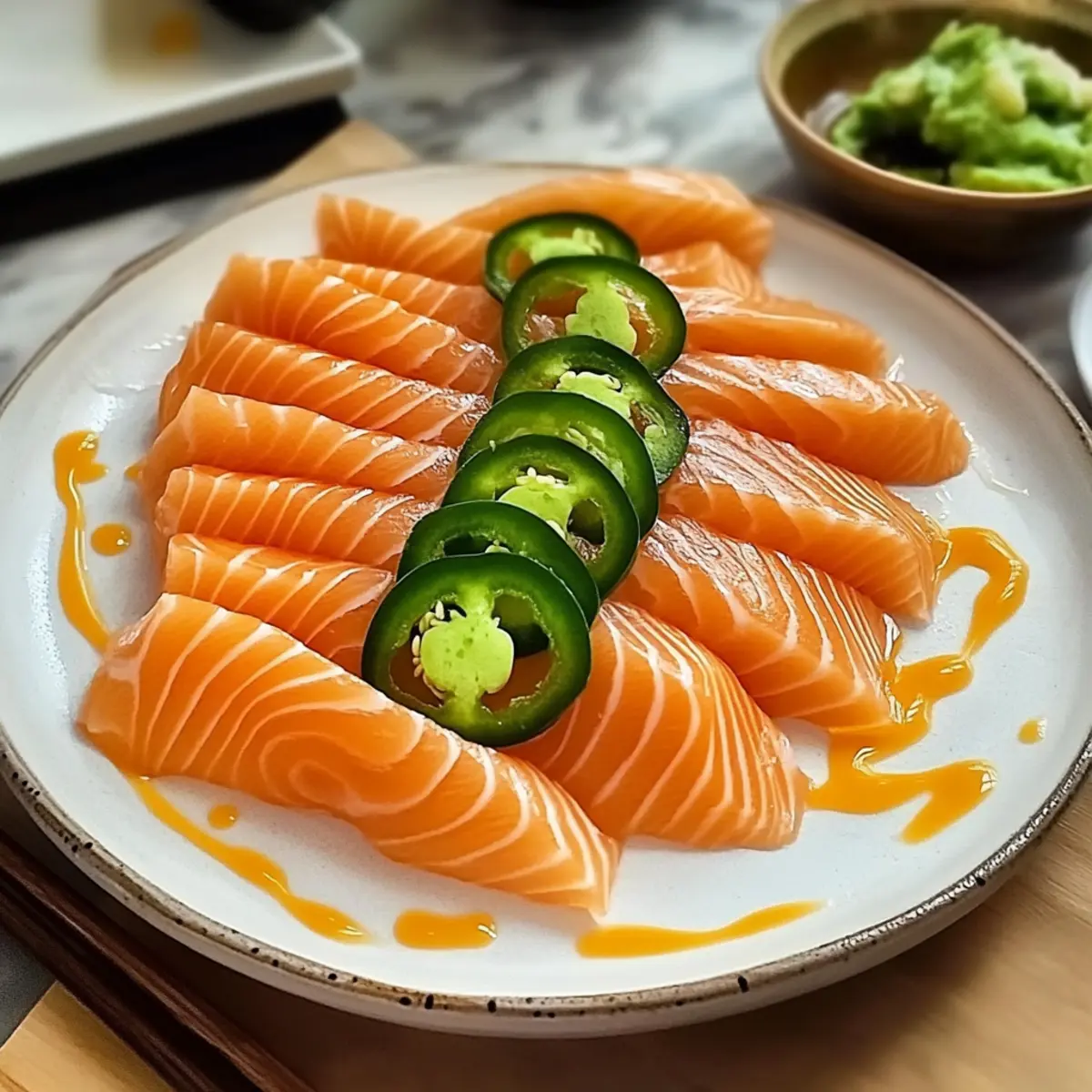 Scharfer Lachs Sashimi mit frischer Ponzu-Sauce