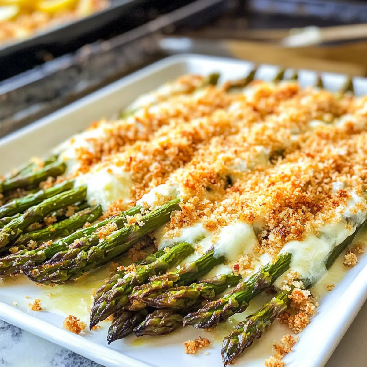 Käseüberbackener Spargel mit knusprigen Pankobröseln