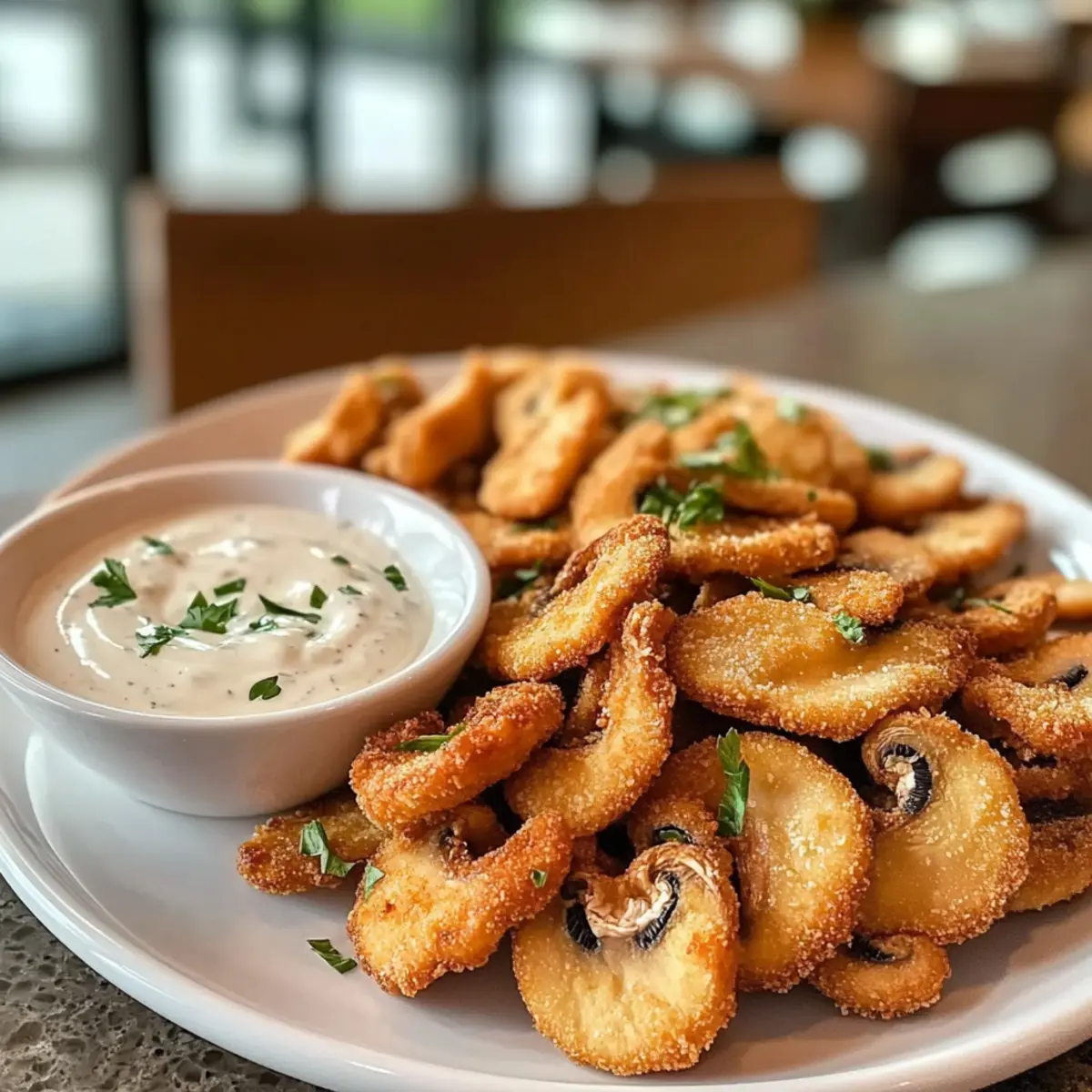 Frittierte geschnittene Champignons mit Ranch-Dip