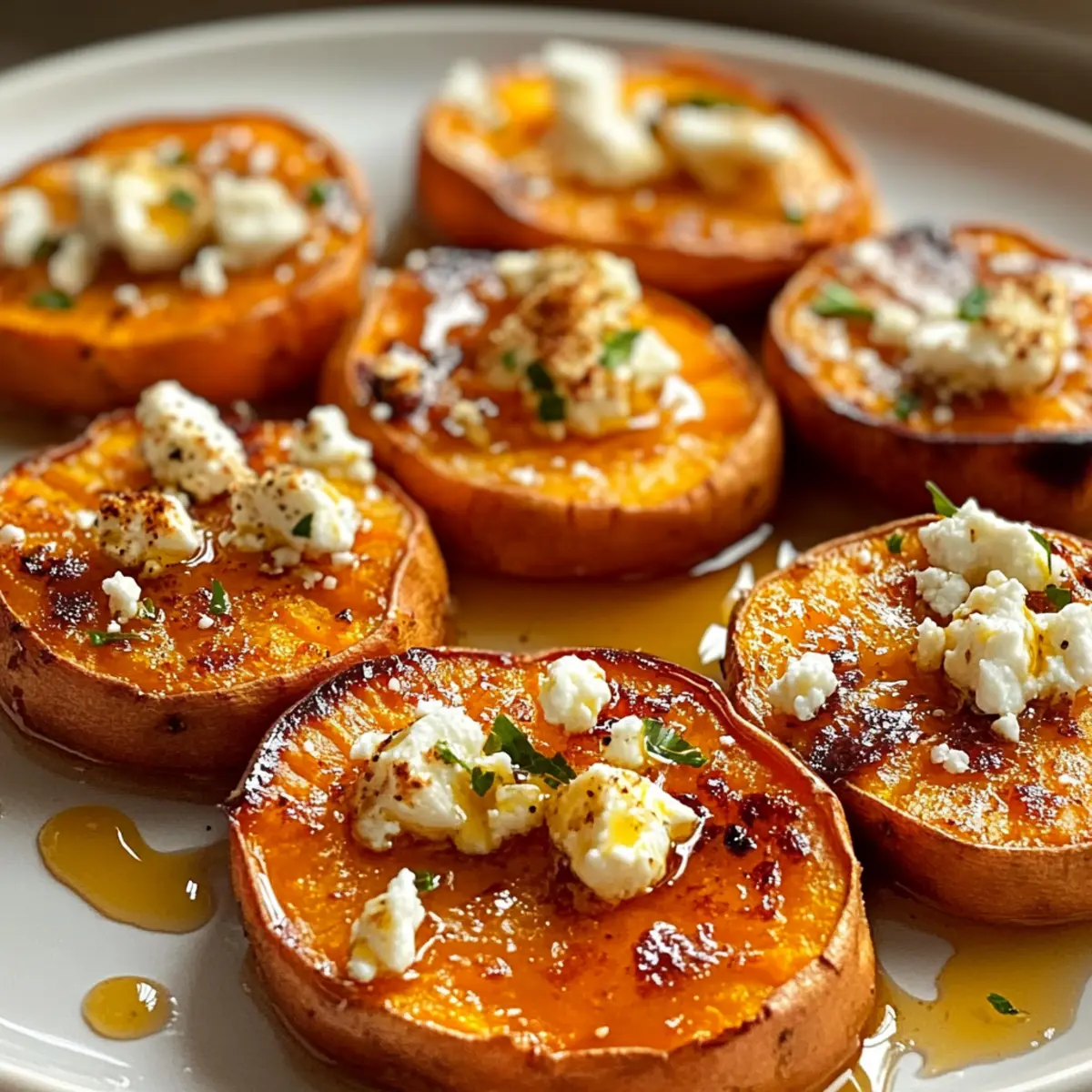 Geröstete Süßkartoffelrunden mit Honig und Feta