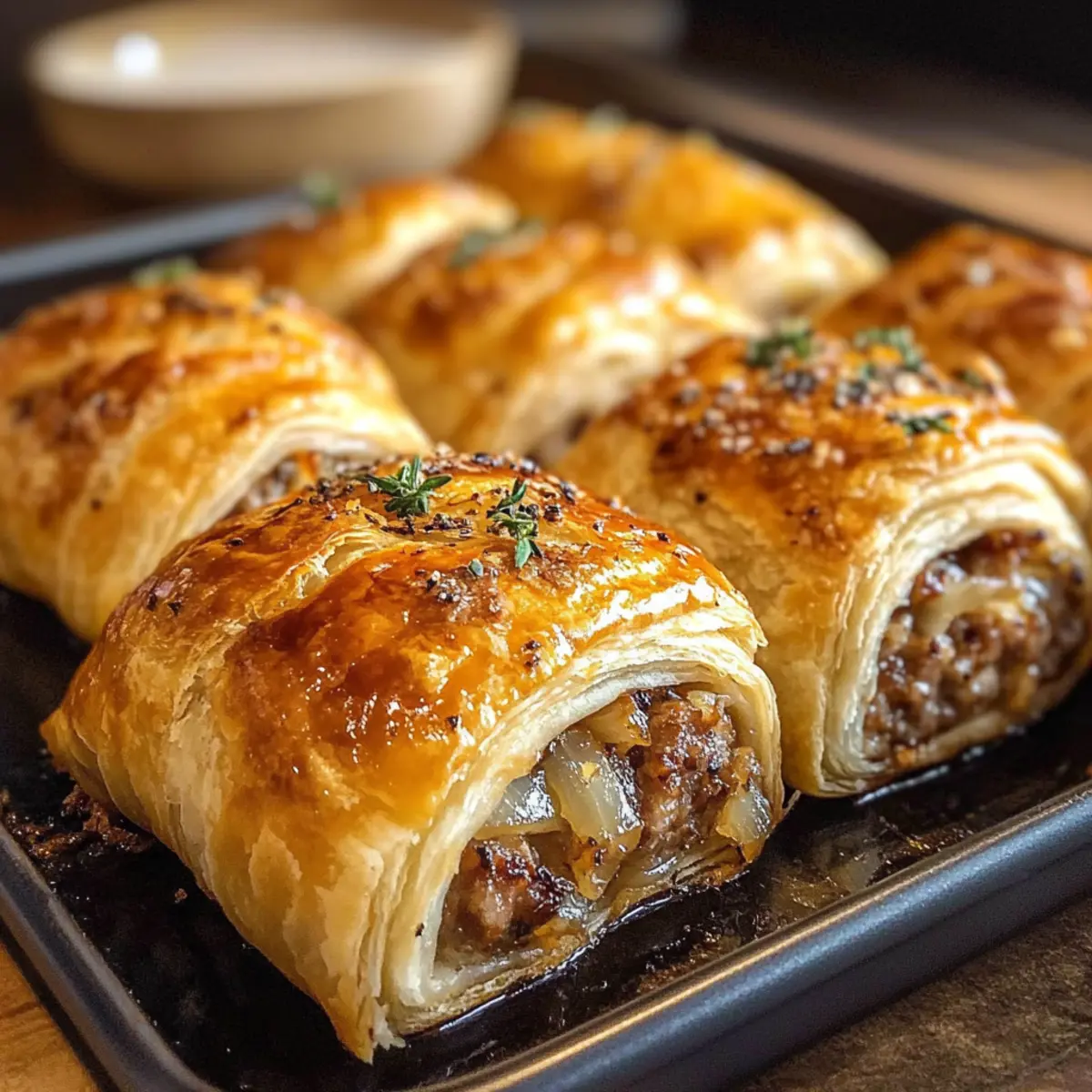 Herzhafte französische Zwiebel-Wurstrollen für Genießer