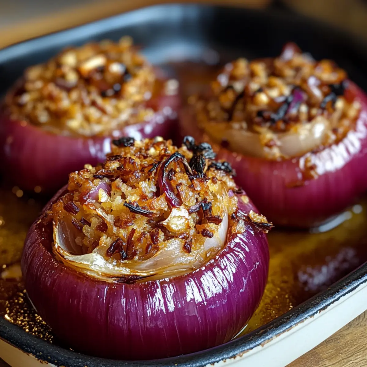 Rote Zwiebeln perfekt gefüllt und knusprig gebraten