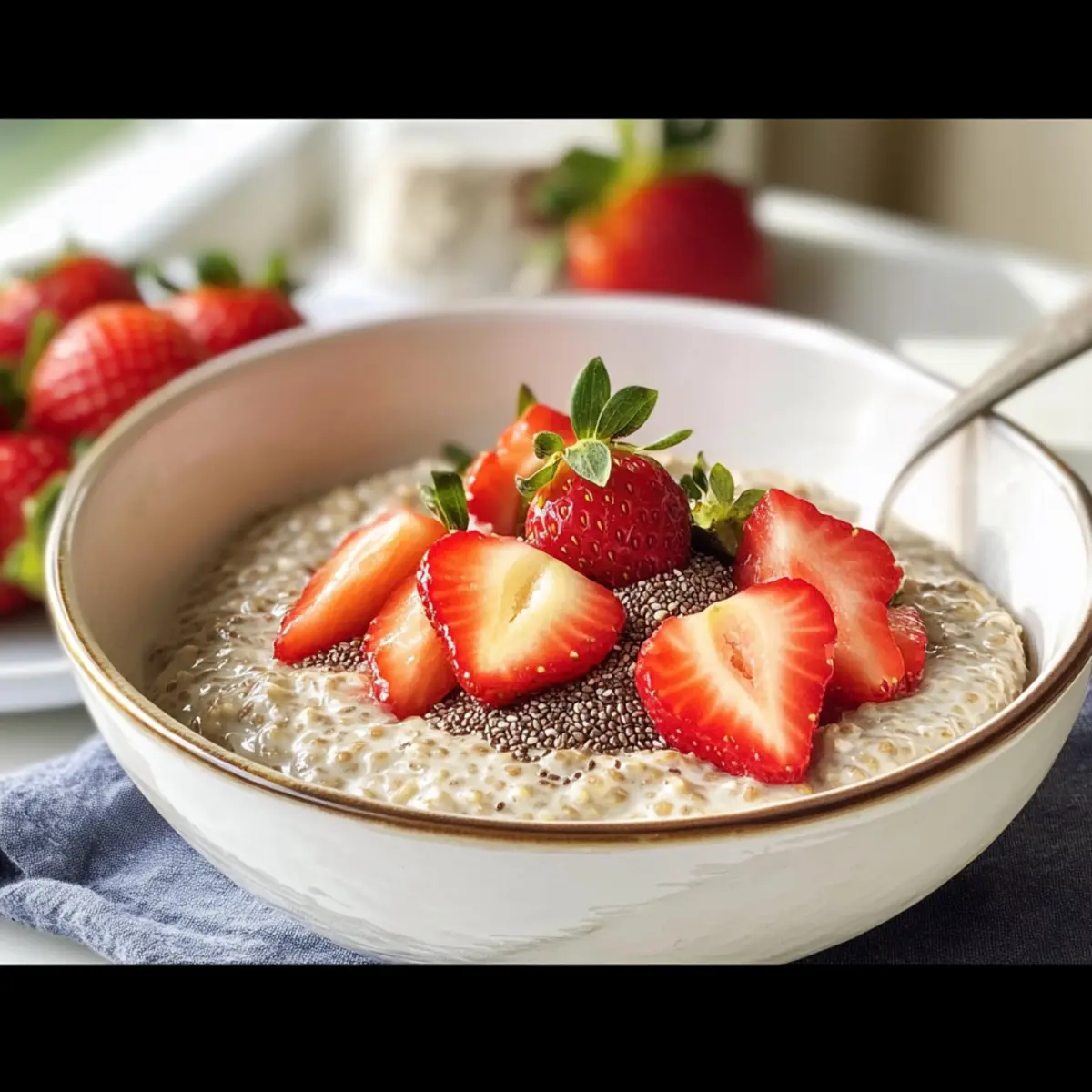 Porridge mit Chiasamen und Erdbeeren für jeden Morgen