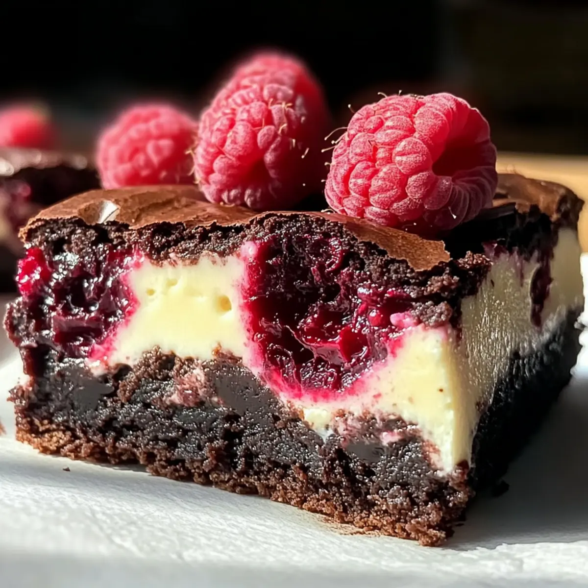Leckere Brownies mit Cheesecake und Himbeeren