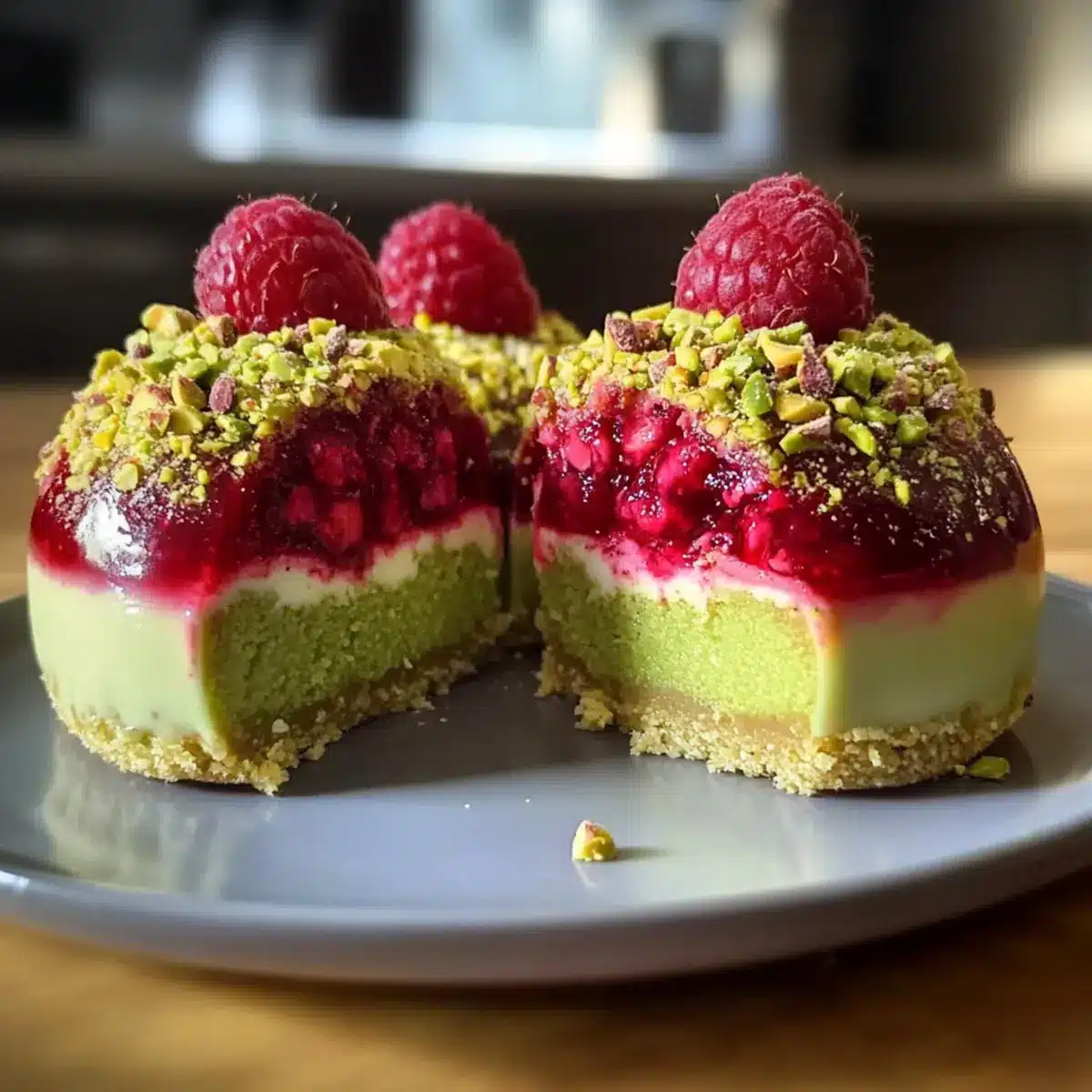 Pistazien-Himbeer-Käsekuchen-Dome einfach selbst machen