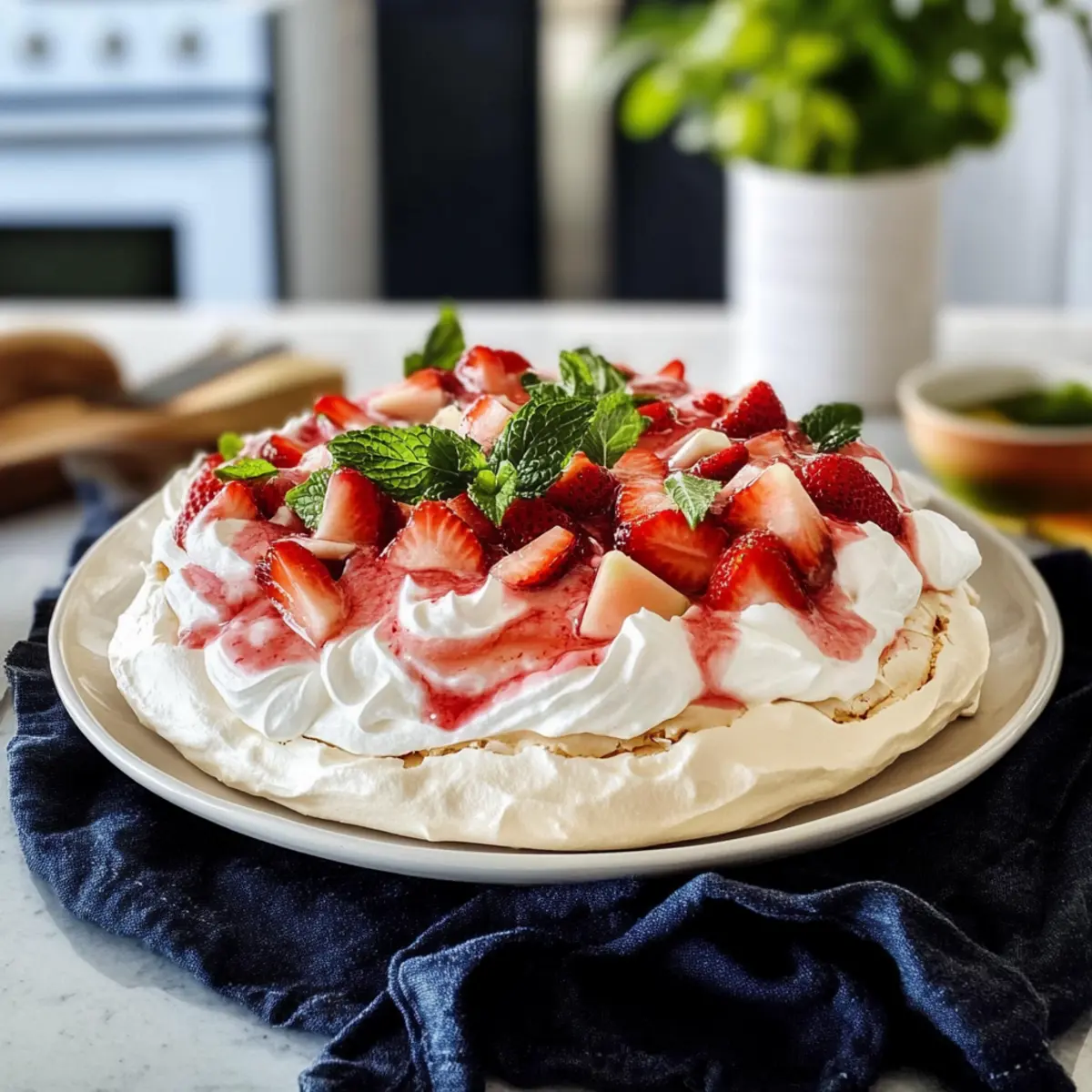 Rhabarber und Erdbeer-Pavlova für den Sommergenuss