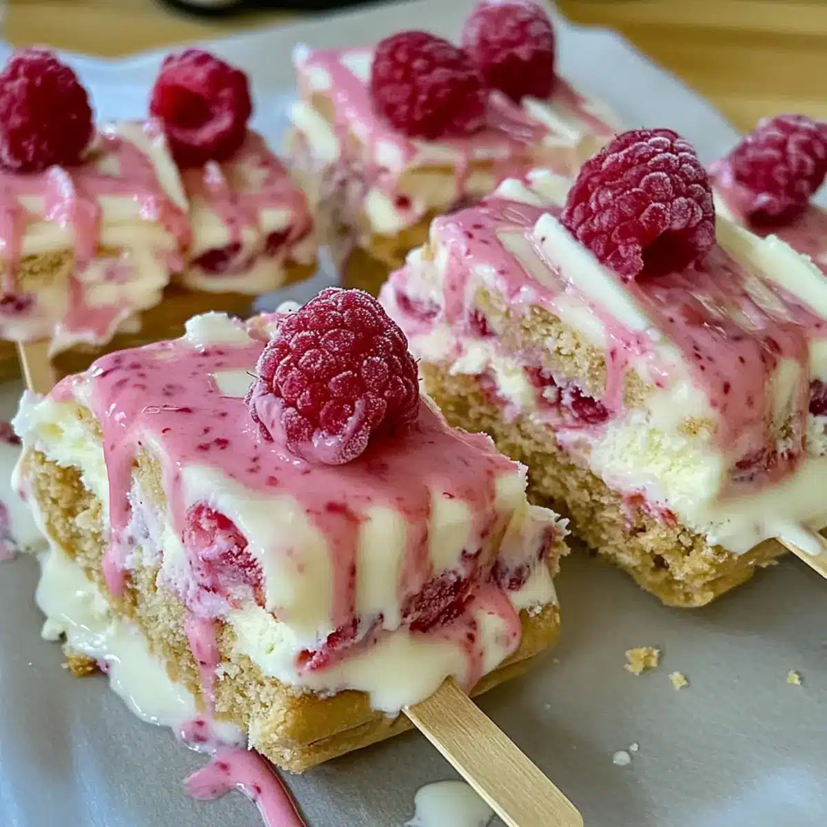 Butterkekse Käsekuchen Eiscreme mit Himbeeren genießen