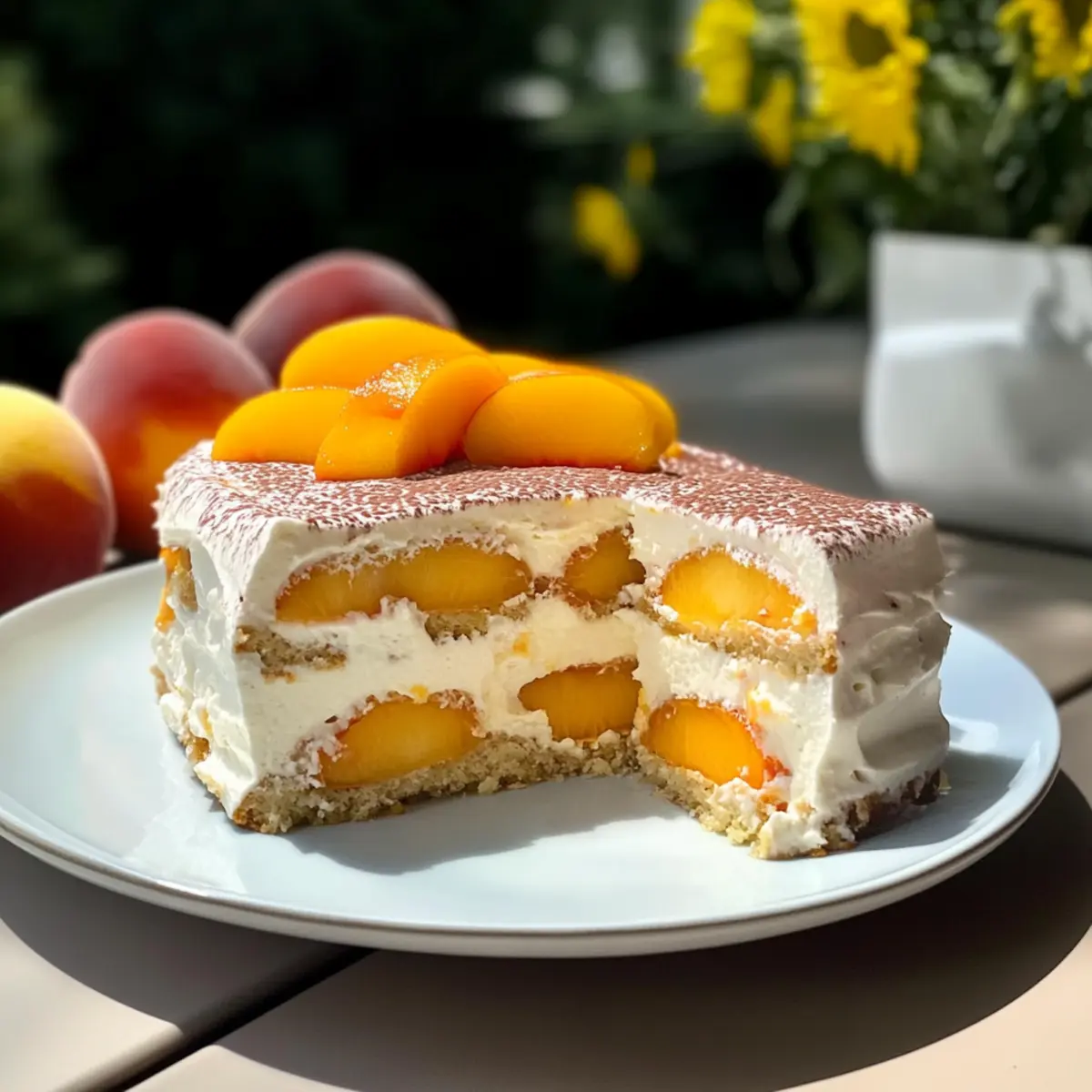 Pfirsich Tiramisu Kuchen für den perfekten Sommergenuss