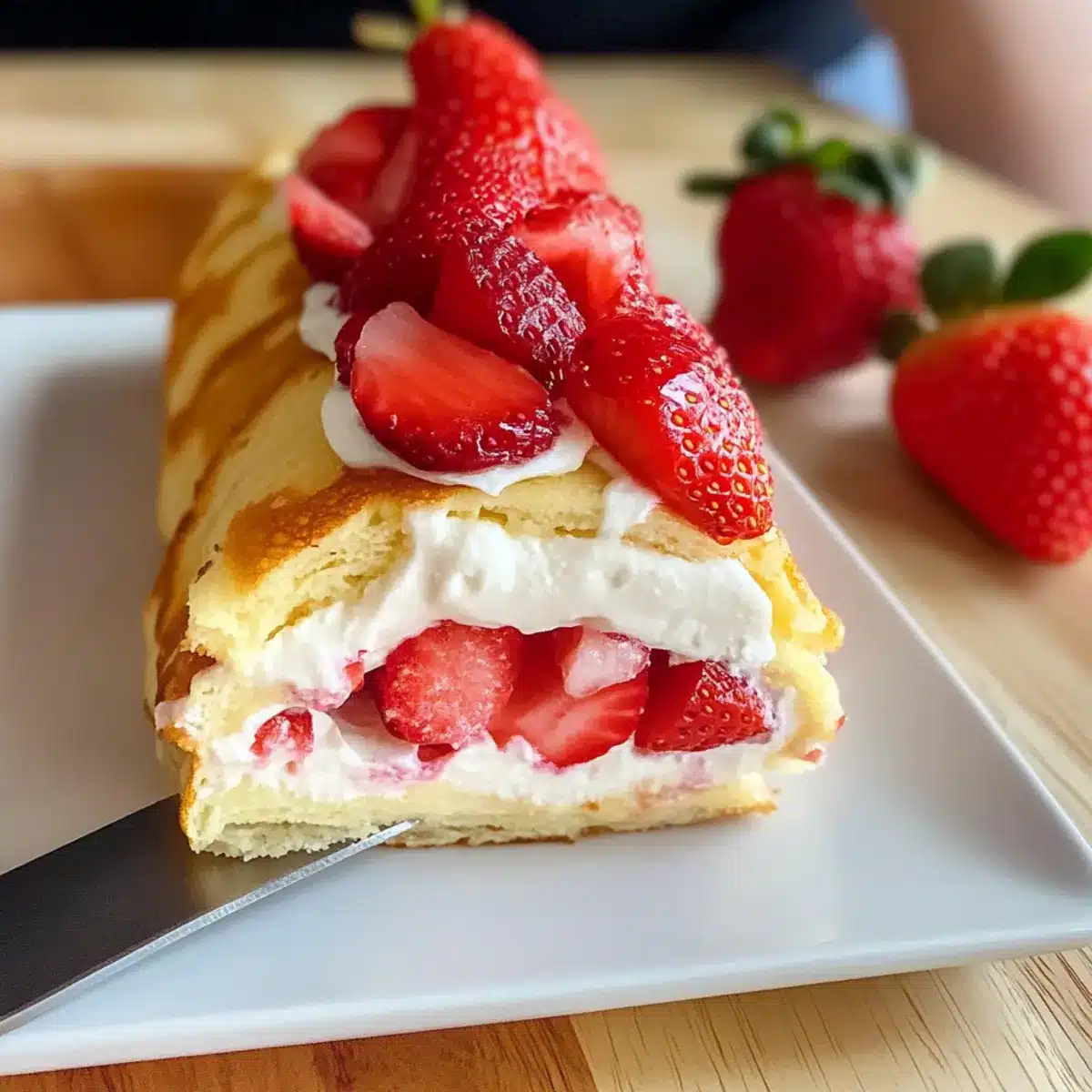 Pfannkuchenrolle gefüllt mit Erdbeersahne – Sommererlebnis
