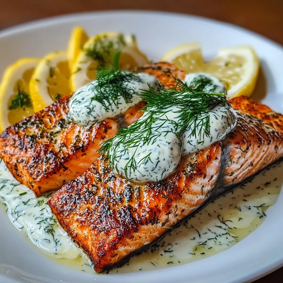 Knoblauchbutterlachs mit cremigem Dill-Joghurt