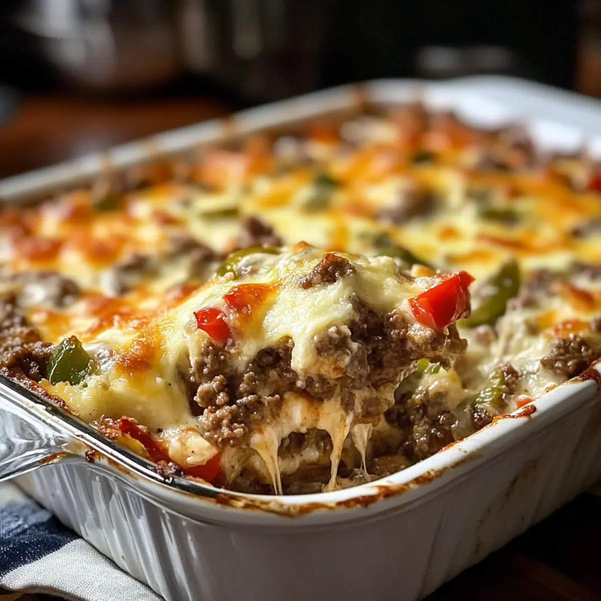Niedrig-Kohlenhydrat-Philly-Cheesesteak-Auflauf Spaß
