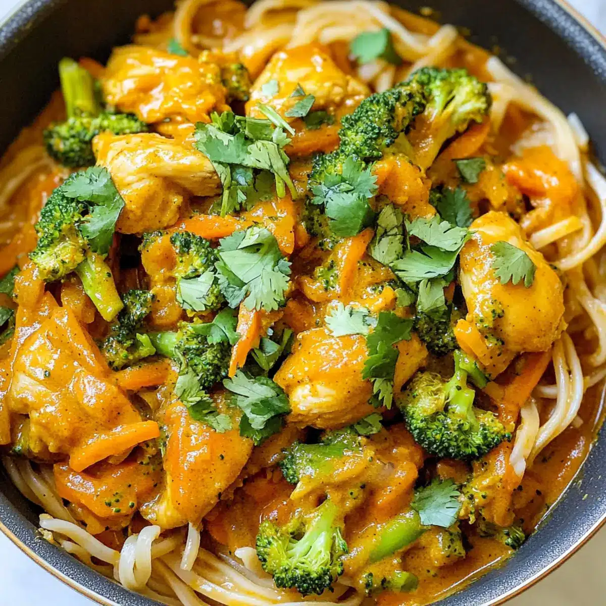 Kokosnuss-Curry-Hühnchen und Reisnudeln zaubern Freude