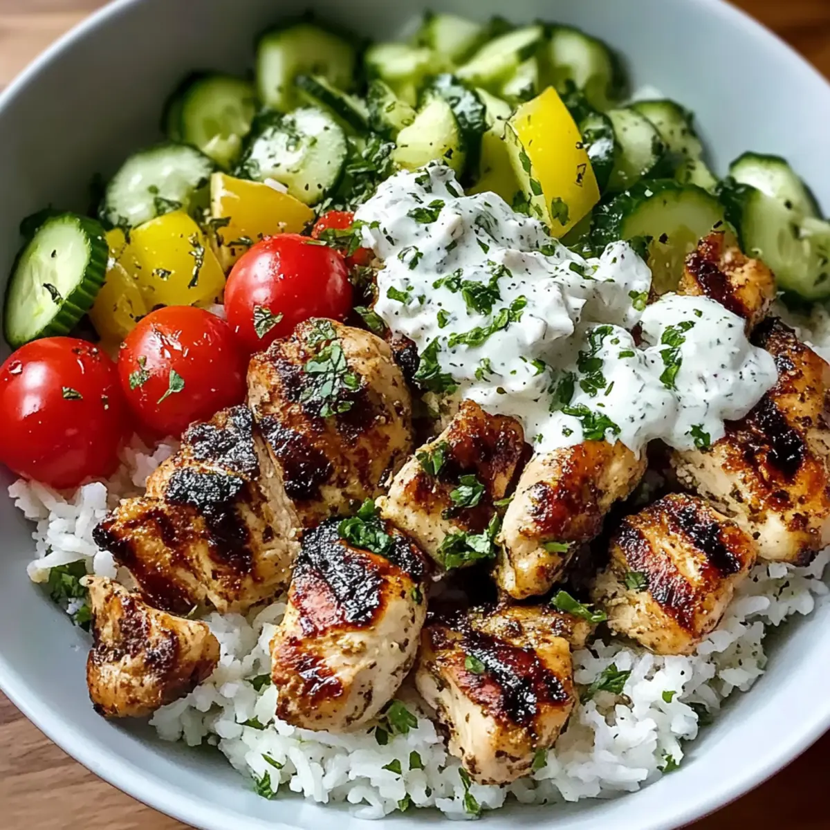 Hähnchen Souvlaki Reis Schalen mit Knoblauchsauce