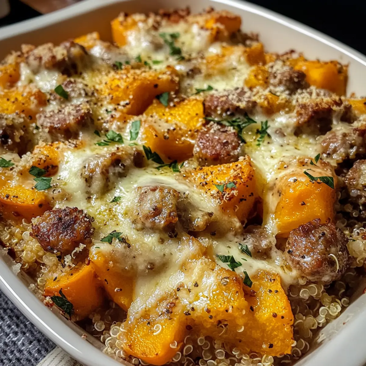 Butternut-Kürbis & Wurst Auflauf für gemütliche Abende