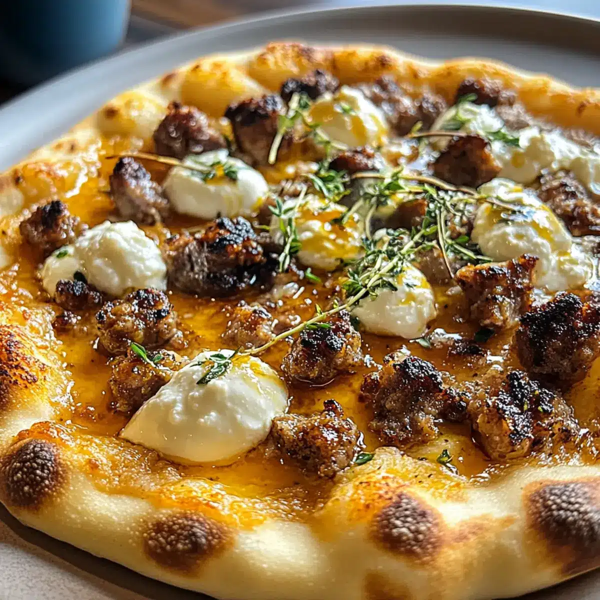 Wurst Ricotta Honig heiße Pizza einfach lecker