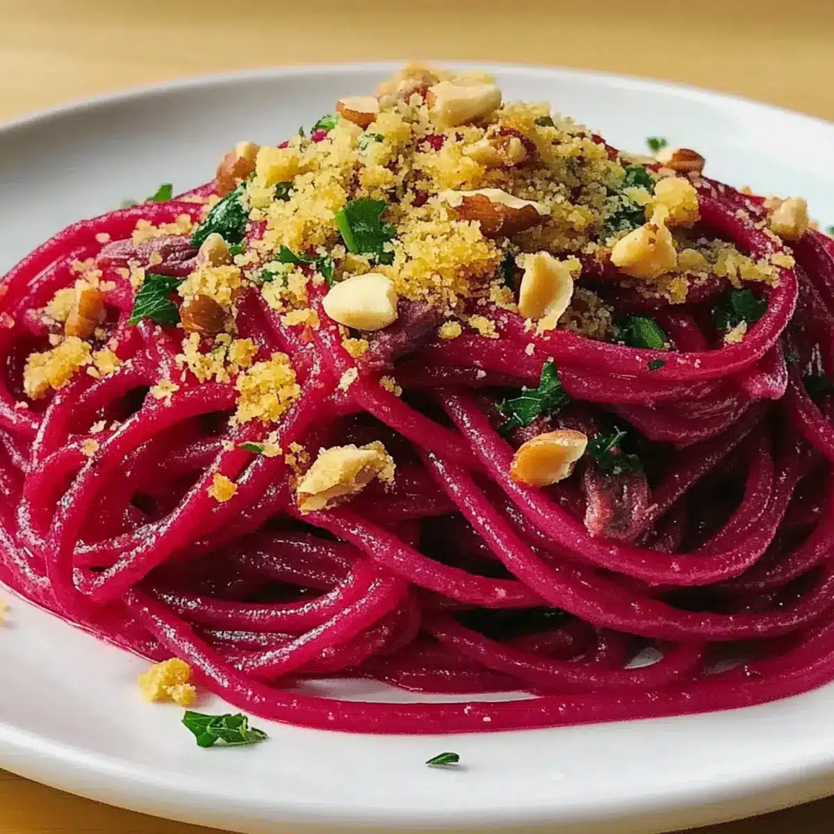 Scarlet Spaghetti mit Walnüssen und knusprigen Bröseln