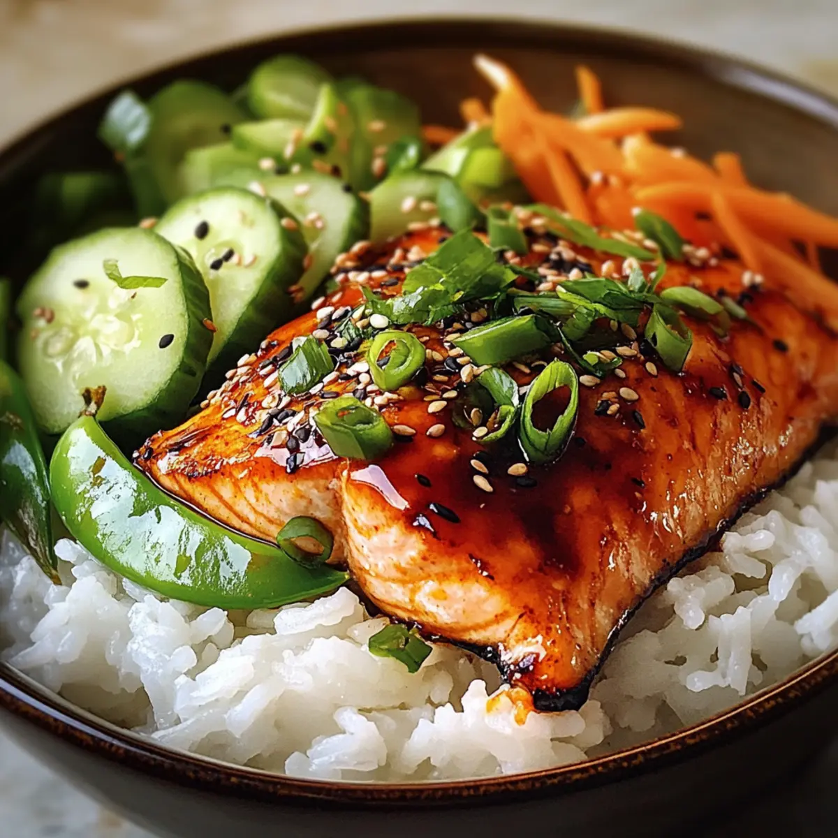 Klebriger Orangen-Gochujang-Lachs-Bowl für Genießer