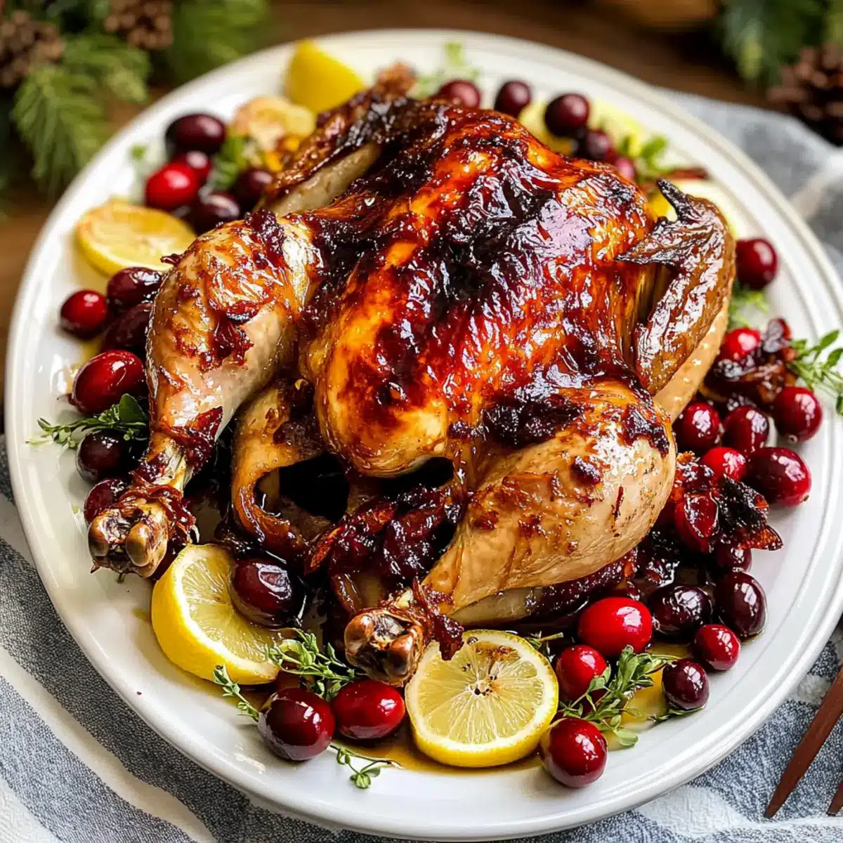 Cranberry-Ahornsirup-Ofen-Hühnchen für Festtage