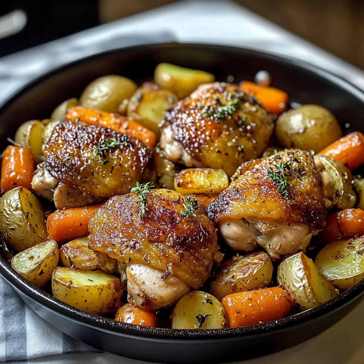 Ein-Pfannen-Geröstete Hähnchenkeulen mit Gemüse