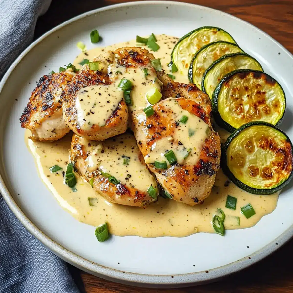 Cremiges Zitronenbutterhuhn mit knusprigem Zucchini