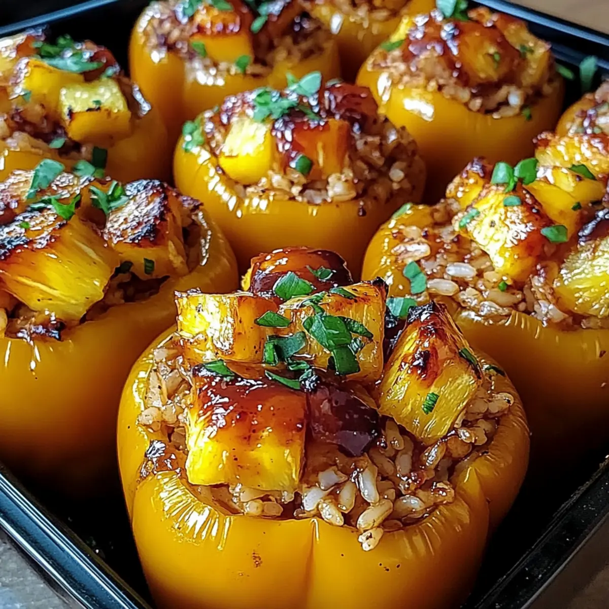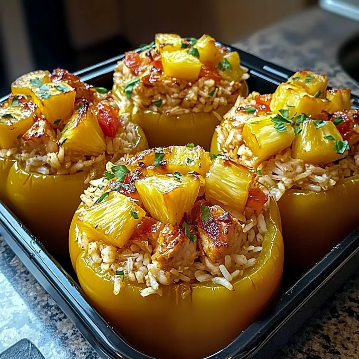 Teriyaki-Ananas-Hühnchen und Reis in Paprika