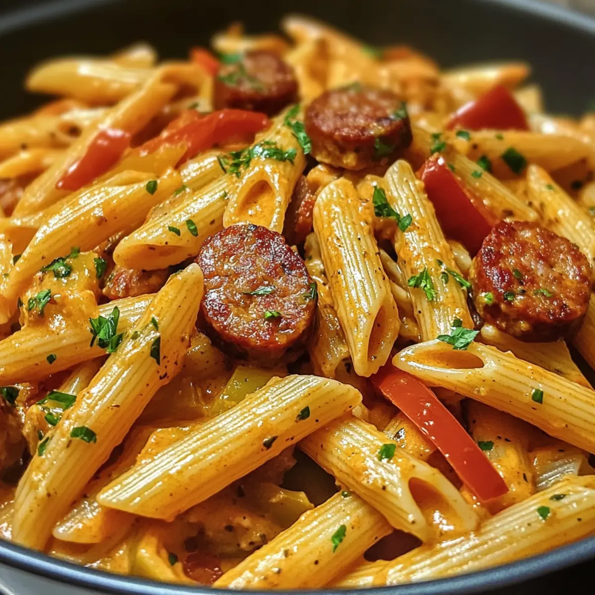 Cremige würzige Cajun Wurst Pasta im Handumdrehen