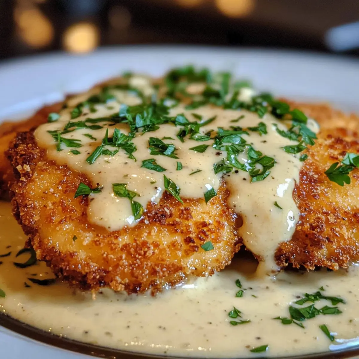Parmesan-Kruste Hühnchen mit cremiger Knoblauchsauce