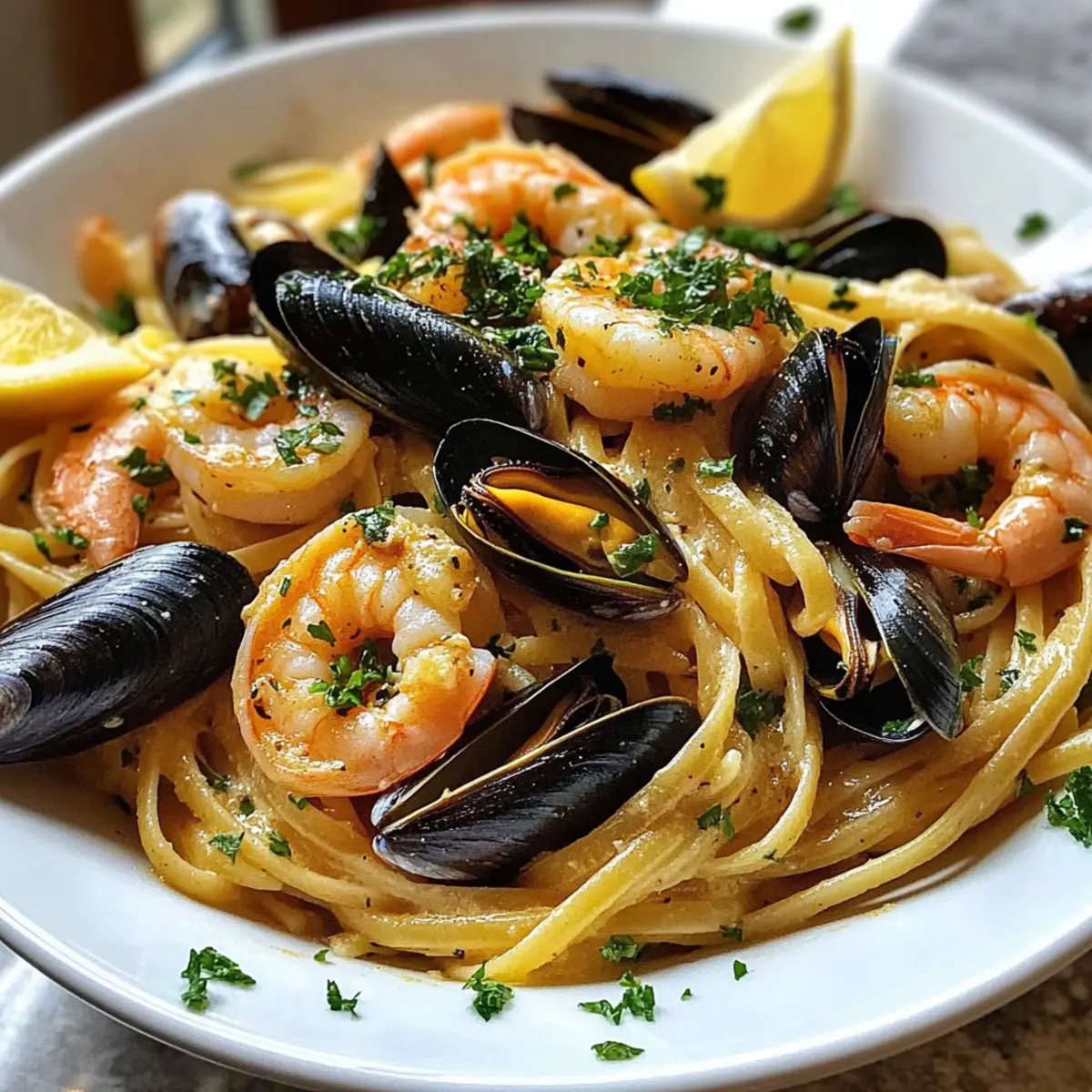 Meeresfrüchte Pasta mit Linguine und Garnelen