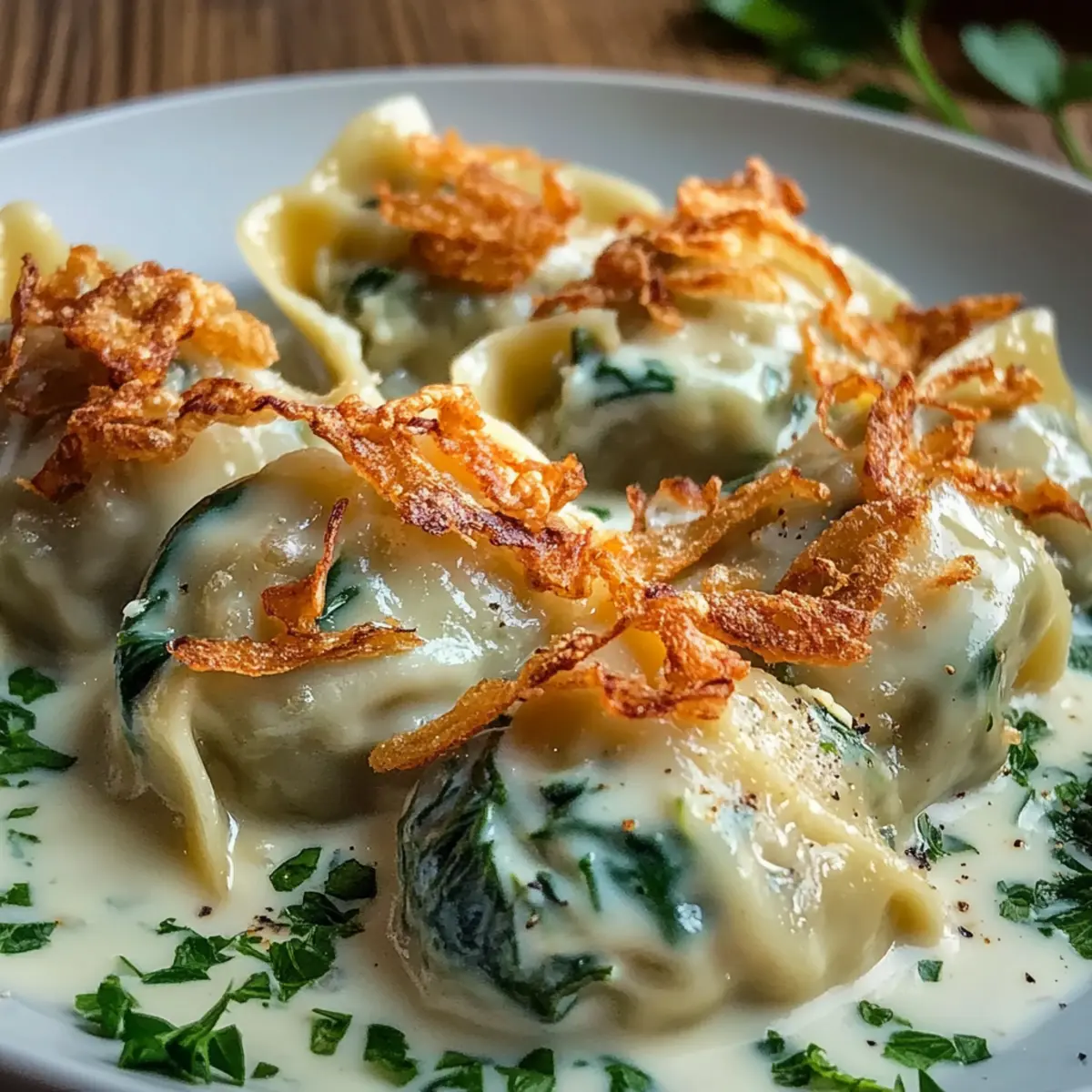Cremige Spinat-Maultaschen mit Röstzwiebeln genießen