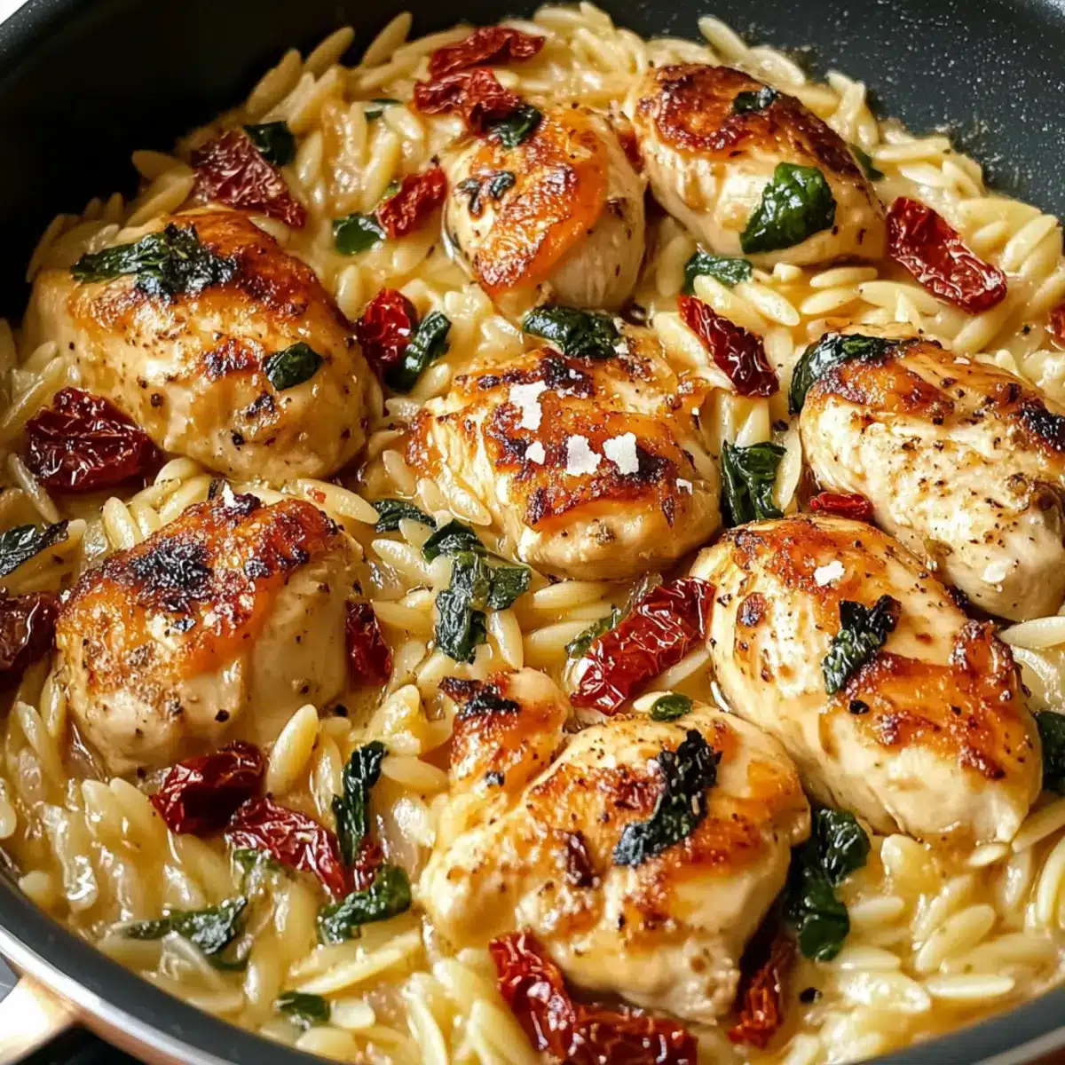 Dump und Backen Tuscanisches Hähnchen Orzo für die Familie
