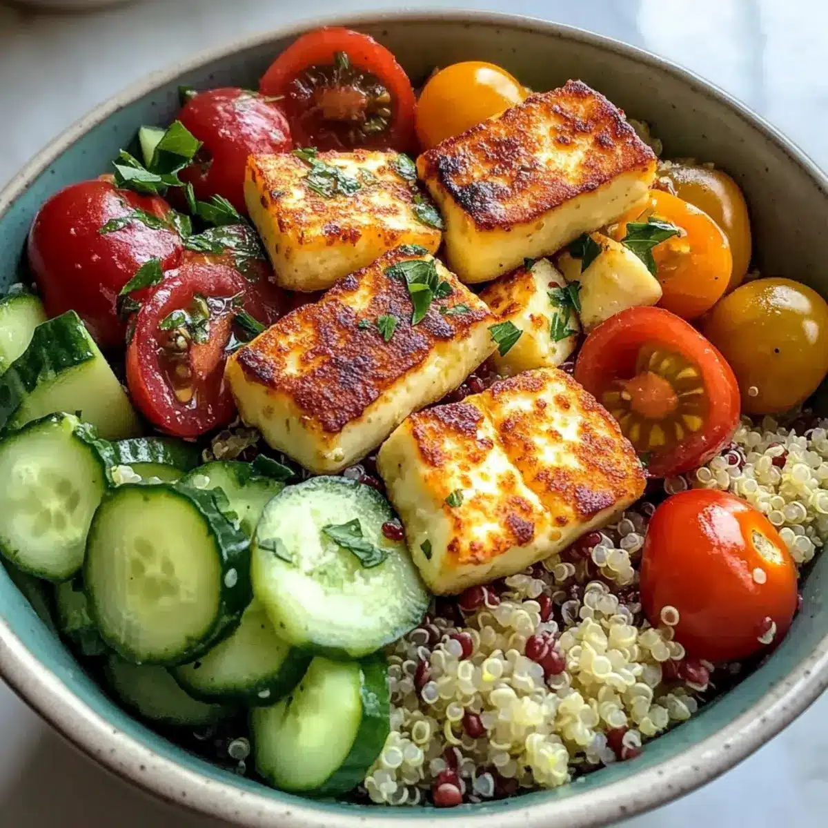 Crispy Halloumi Griechische Kraftschüssel Rezept