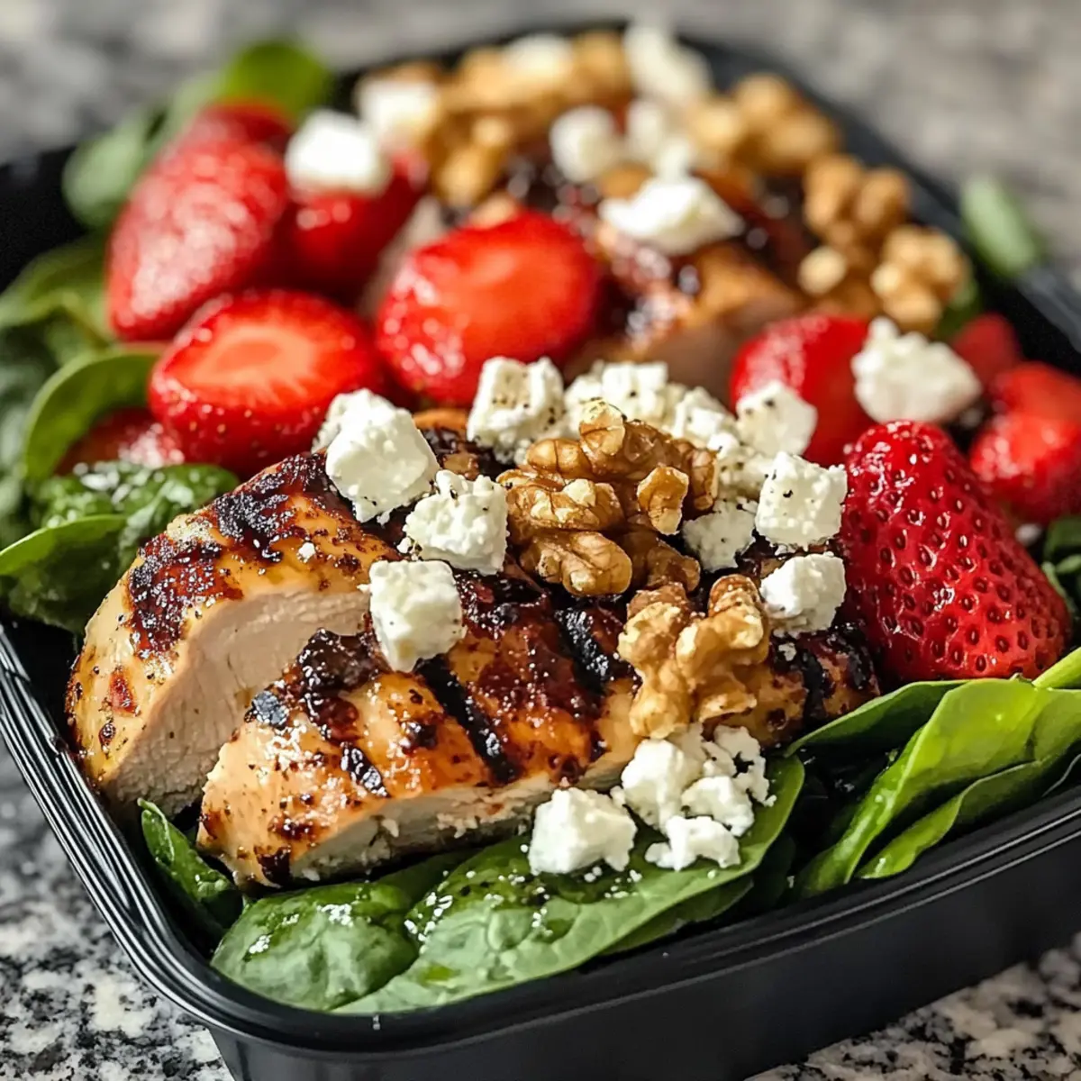 Spinat- und Erdbeer-Mahlzeitenvorbereitungs-Salat genießen