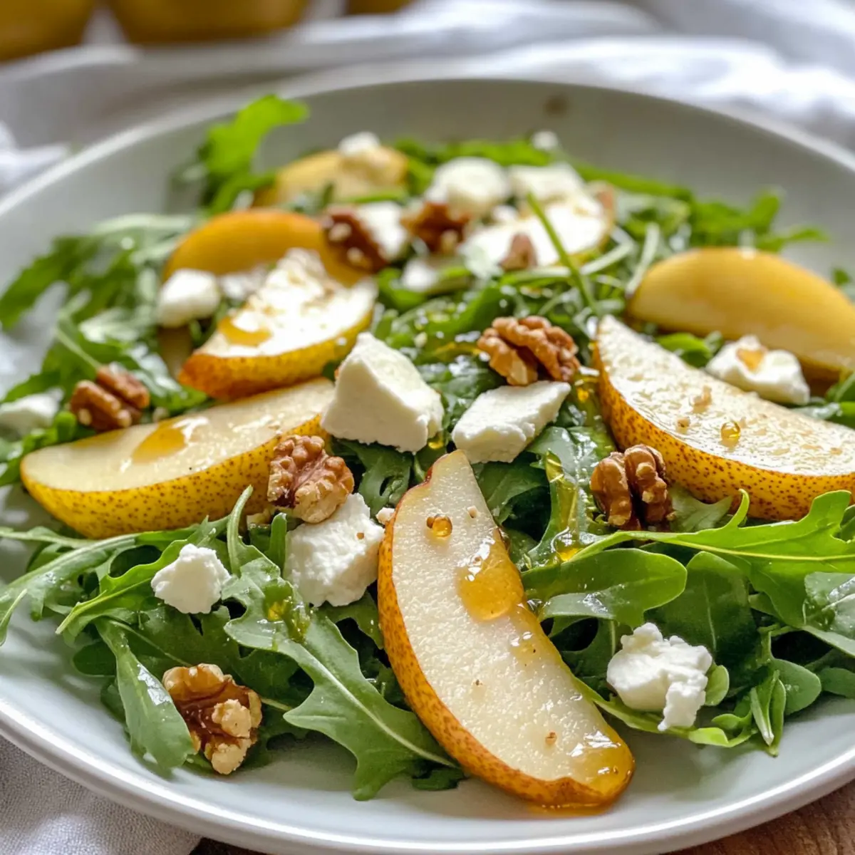 Birnen- und Rucola-Salat mit Honig-Vinaigrette kürz und frisch