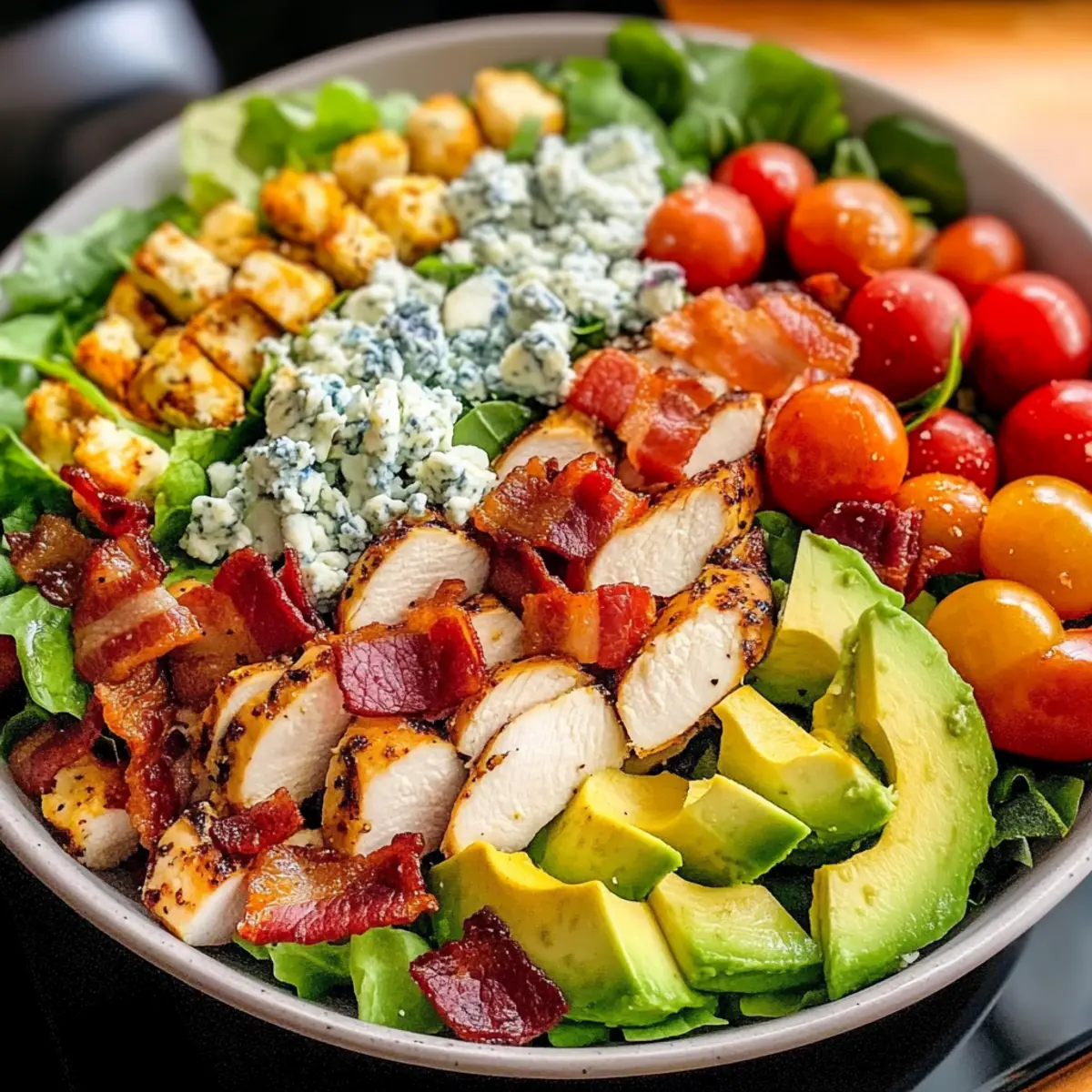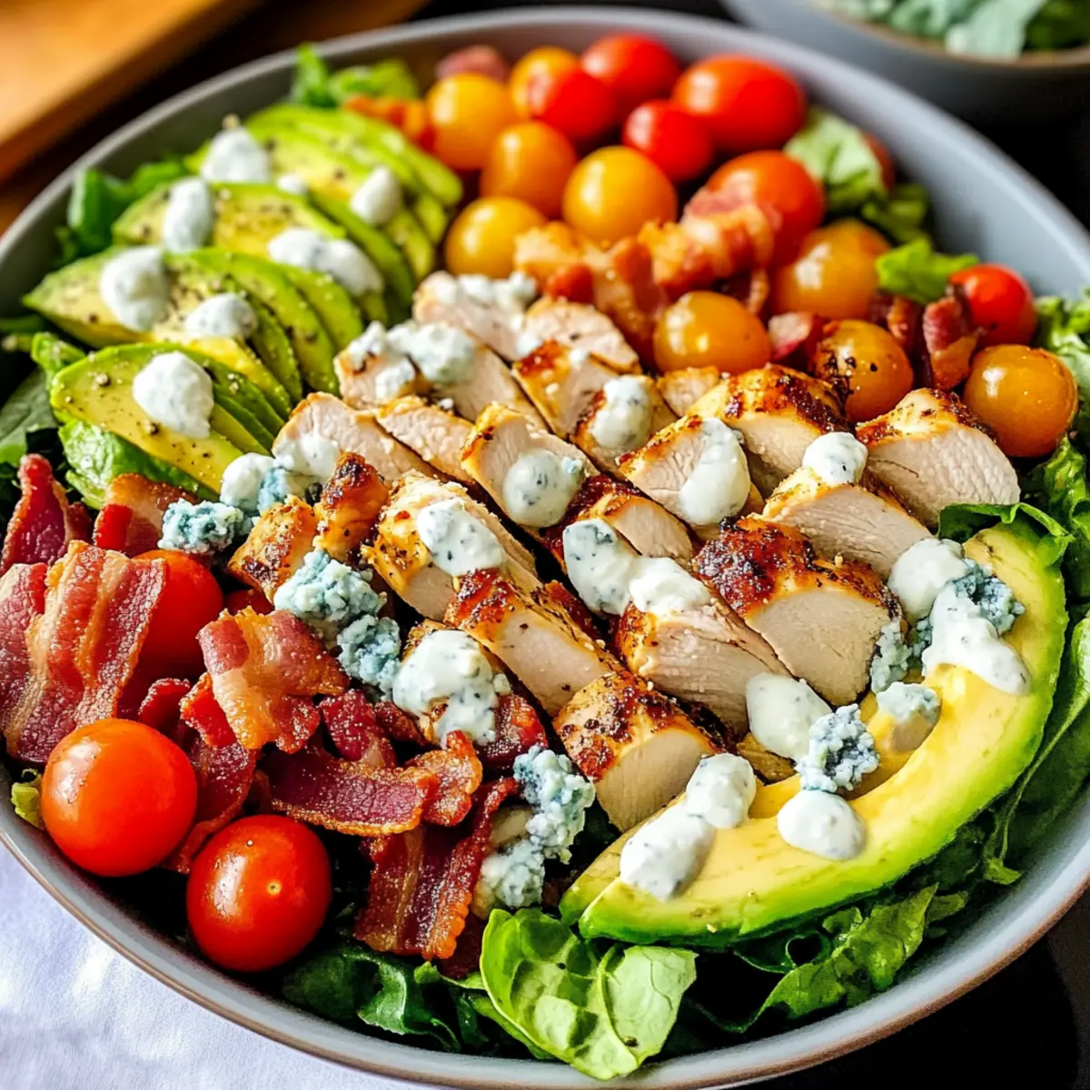 - Zutaten anpassen: Nutzen Sie saisonales Gemüse und Obst, um den Geschmack Ihres Cobb-Salats zu variieren und ihn nahrhafter zu machen.