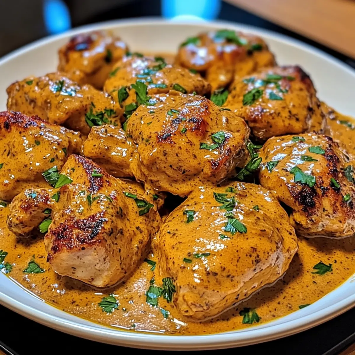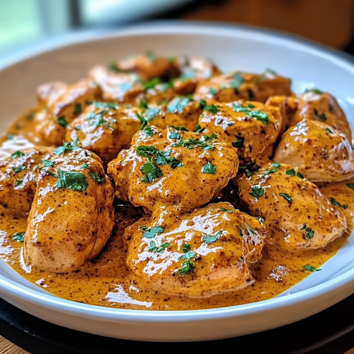 Cremiger Genuss: Die samtige Buttersauce umhüllt zartes Hähnchen und bietet ein Geschmackserlebnis, das Ihre Geschmacksknospen verwöhnt.