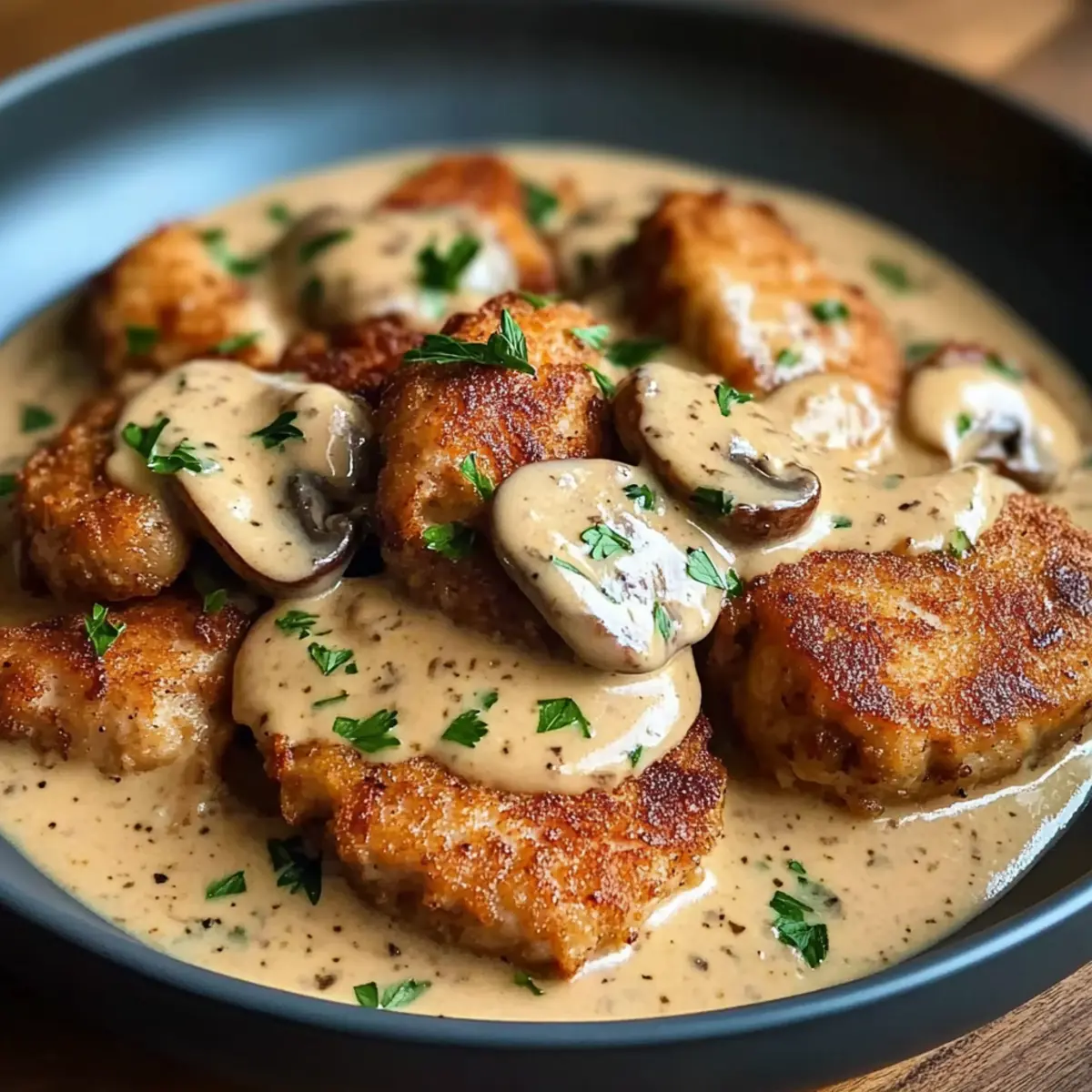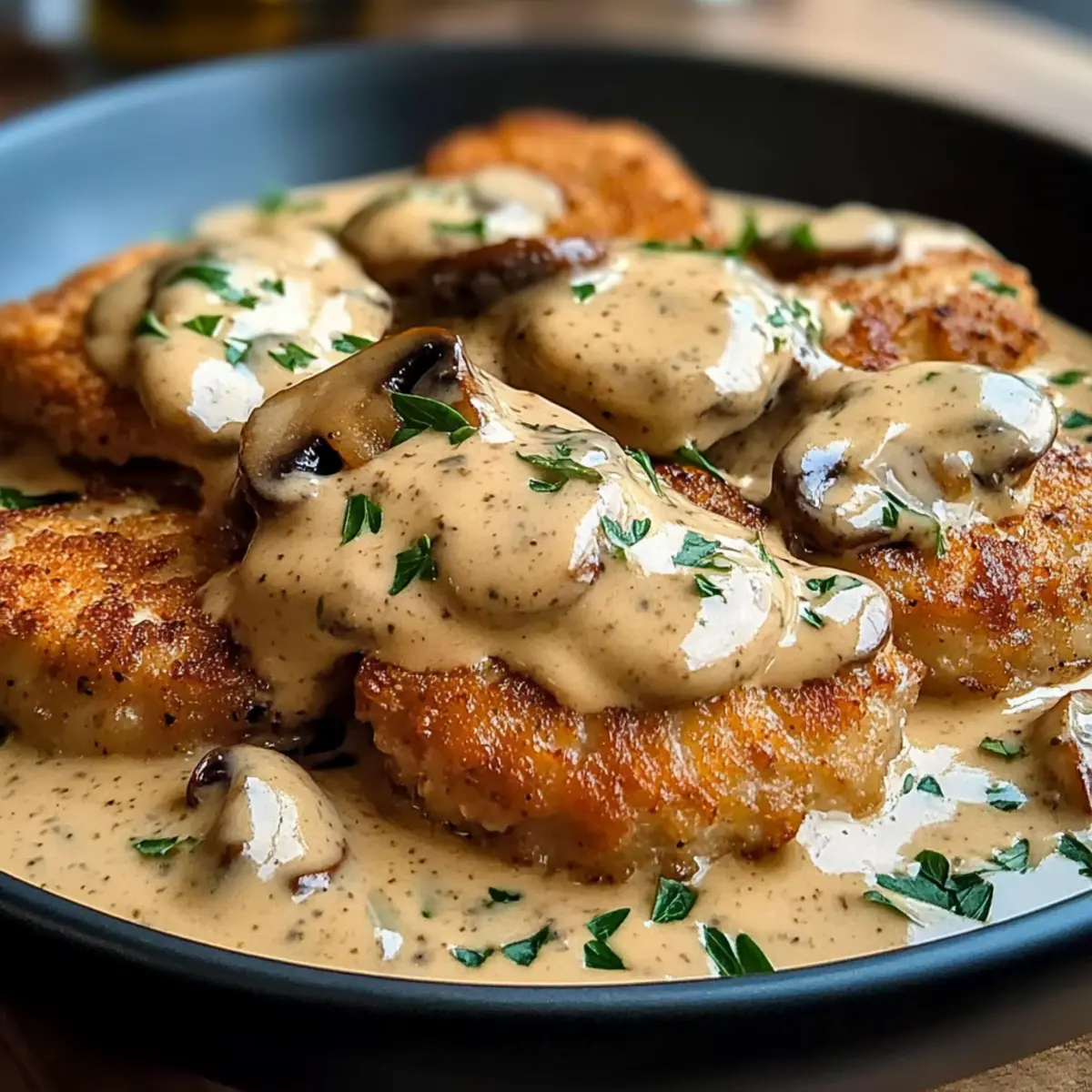Schnitzel: Das zarte Fleisch wird perfekt ergänzt durch die cremige Jägersoße, die jeden Biss zu einem Genuss macht. Die Kombination aus knusprigem und cremigem Mundgefühl ist einfach unwiderstehlich.