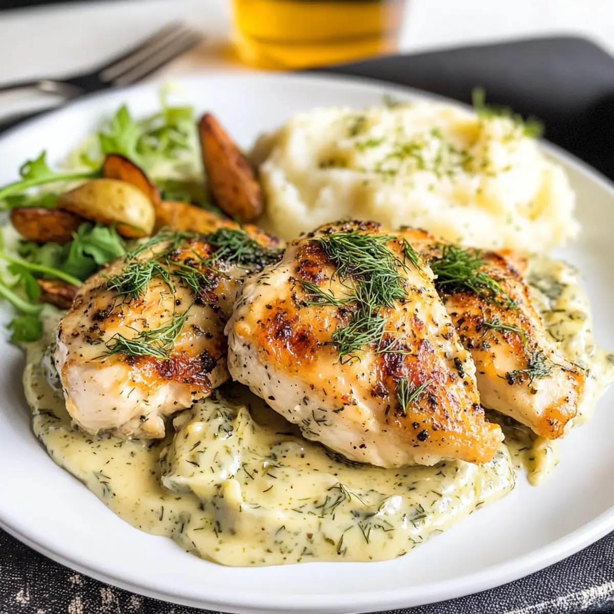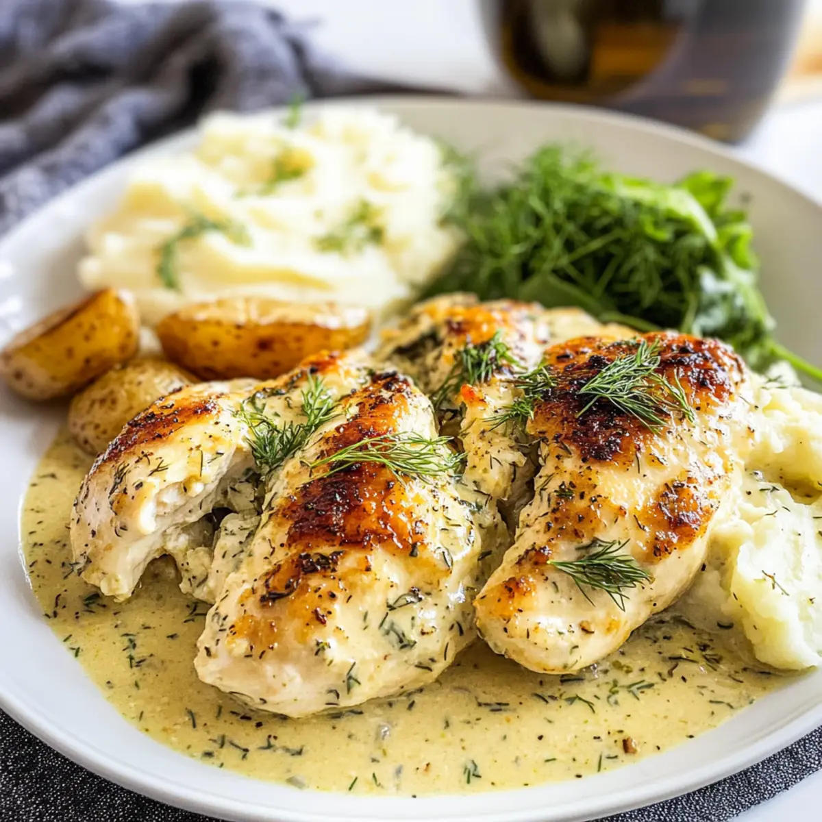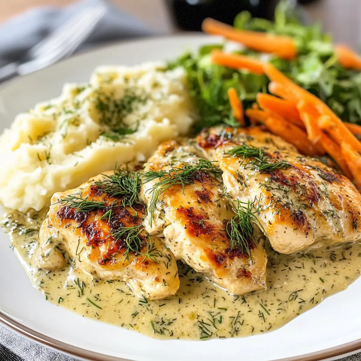 Der perfekte Abend beginnt mit dem köstlichen Aroma von cremigem Dill-Hähnchen und wird durch die richtigen Beilagen abgerundet.