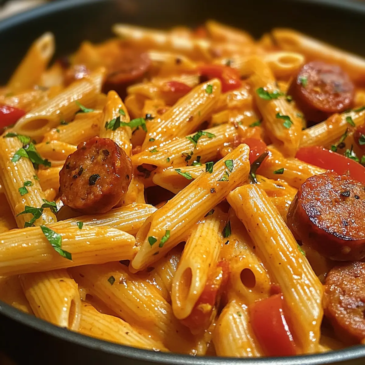Einfache Zubereitung: Mit nur einem Topf ist diese cremige, würzige Cajun Wurst Pasta im Nu zubereitet! Aromatische Aromen: Die Kombination von Cajun Gewürzen und rauchiger Wurst sorgt für einen unwiderstehlichen Geschmack, der deine Geschmacksknospen verführt. Vielfältige Variationen: Du kannst ganz einfach frisches Gemüse oder verschiedene Wurstsorten hinzufügen, um das Gericht nach deinen Vorlieben zu gestalten. Perfekte Konsistenz: Die cremige Sauce umhüllt die zarten Penne und sorgt für ein einladendes und sättigendes Gericht. Für noch mehr Inspiration empfehle ich dir, unsere anderen variativen Rezeptideen auszuprobieren. Ob für ein schnelles Dinner oder ein herzhaftes Familienessen, dieses Rezept begeistert jeden!
