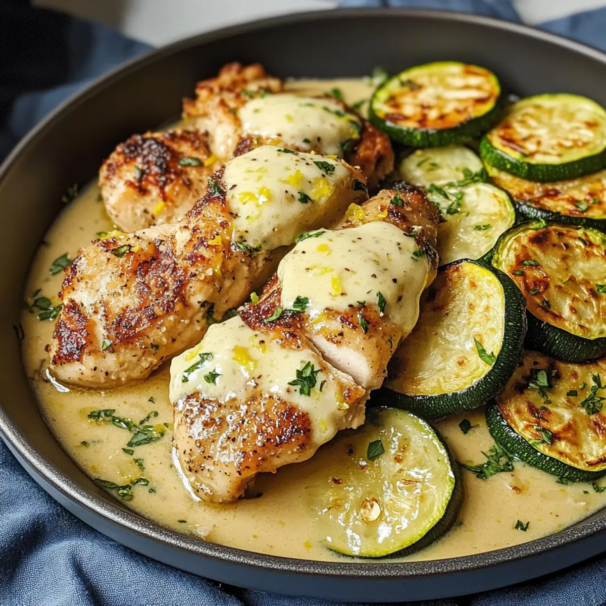 Cremiges Zitronenbutterhähnchen mit Zucchini