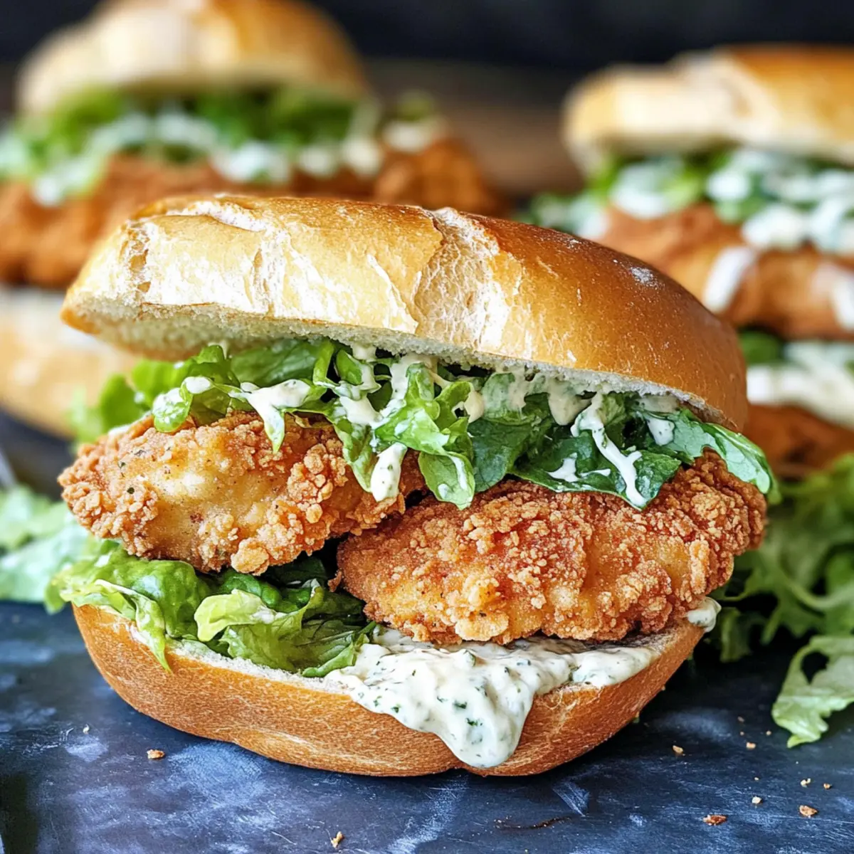 - Serviere die Crispy Chicken Caesar Sandwiches umgehend.