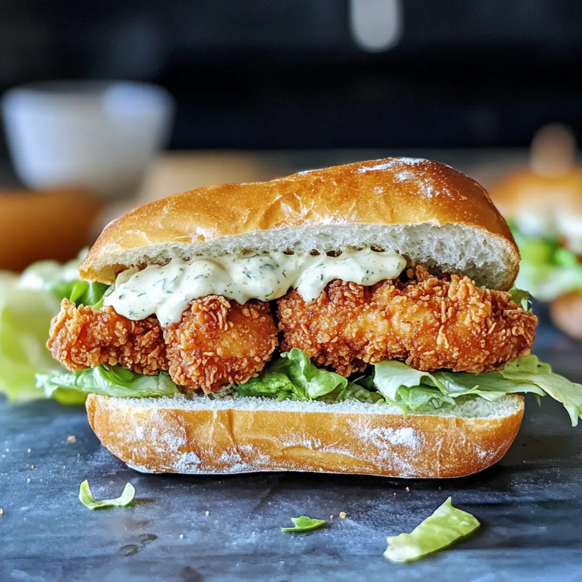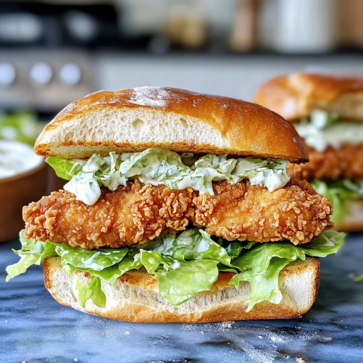 Crispy Genuss! Bei jedem Biss erwartet dich das knusprige Hähnchen, das perfekt mit dem cremigen Dressing harmoniert. Einfache Zubereitung! Das Rezept ist unkompliziert, sodass auch Kochanfänger tolle Ergebnisse erzielen können. Anpassbar! Du kannst Zutaten nach deinem Geschmack variieren, sei es mit gegrilltem Gemüse oder anderen Ersatzen. Schnell und lecker! Ideal für ein Mittagessen oder ein schnelles Abendessen, das alle zufriedenstellt. Sichtbares Staunen! Dieses Sandwich wird garantiert der Hit bei deinen Freunden und deiner Familie! Probiere es aus und entdecke, wie du mit einem einfachen Rezept köstliche Geschmackserlebnisse kreieren kannst.