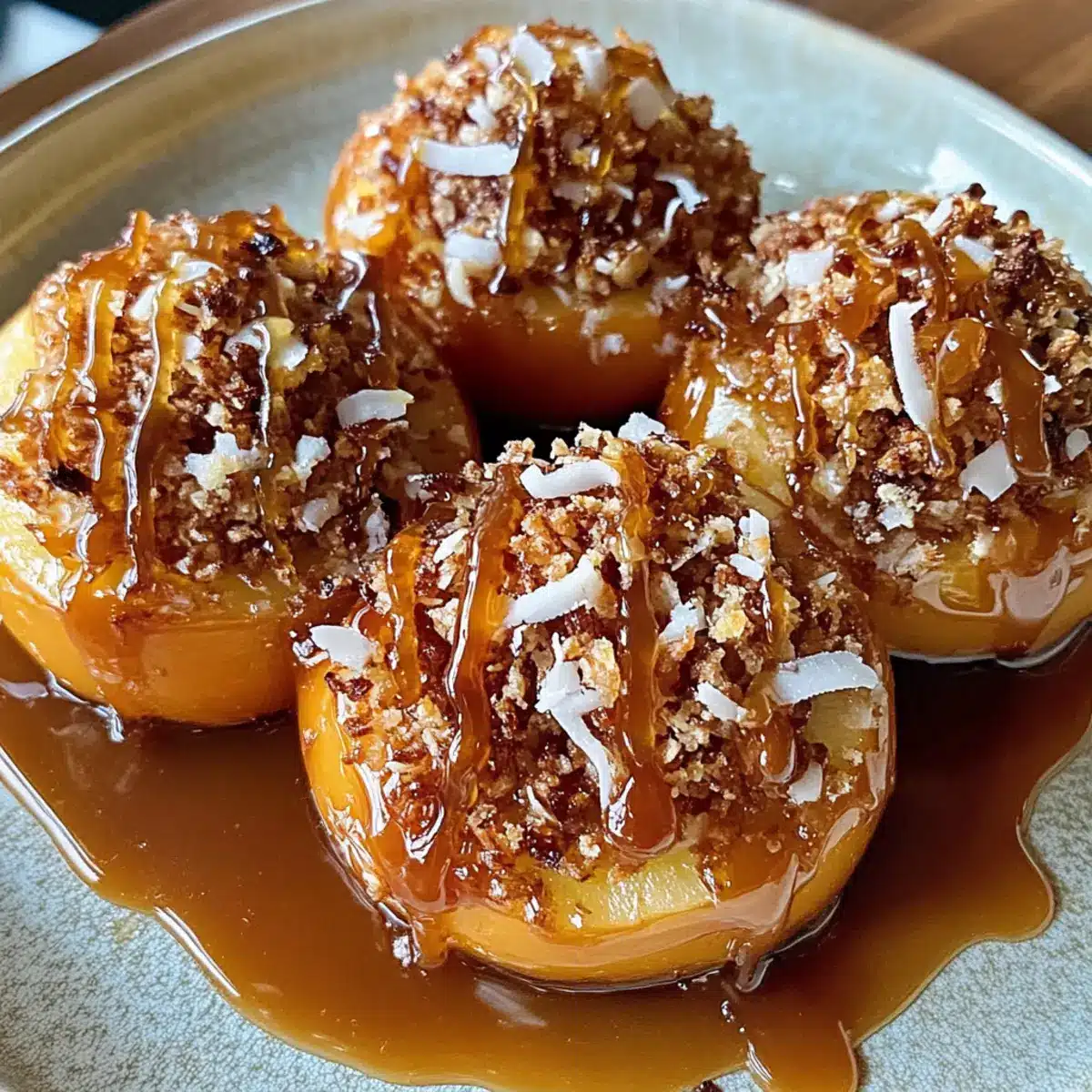 Es war an einem kühlen Abend, als ich die Idee zu meinen dekadenten gebackenen Apfel Samoas hatte. Der verführerische Geruch von frisch gebackenen Äpfeln, gefüllt mit knackigem Kokosgranola und Pecannüssen, hat den Raum erfüllt und mich an tropische Strände erinnert. Diese süßen kleinen Köstlichkeiten sind nicht nur ein echter Hingucker, sondern auch ein bezauberndes Dessert, das mit einer seidigen Kokosnusssoße überzogen wird – perfekt für gemütliche Abende mit Freunden oder Familie. Die Zubereitung ist schnell und einfach, sodass du im Handumdrehen diese unwiderstehlichen gebackenen Äpfel auf den Tisch bringen kannst. Und das Beste daran? Sie sind vegetarisch und lassen sich leicht vegan zubereiten! Bist du bereit, in die Welt dieser tropischen Dessertwunder einzutauchen?