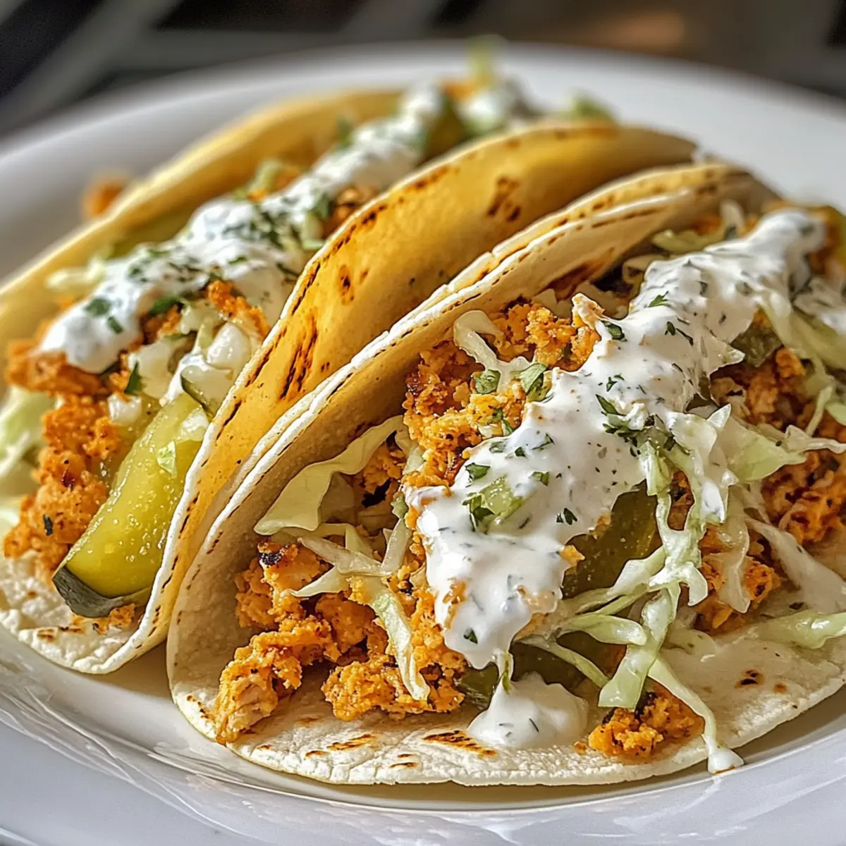 Einzigartige Mischung: Die Kombination aus Dillgurken und Ranch in diesen Tacos sorgt für einen erfrischenden, würzigen Geschmack, der dich sofort begeistert.