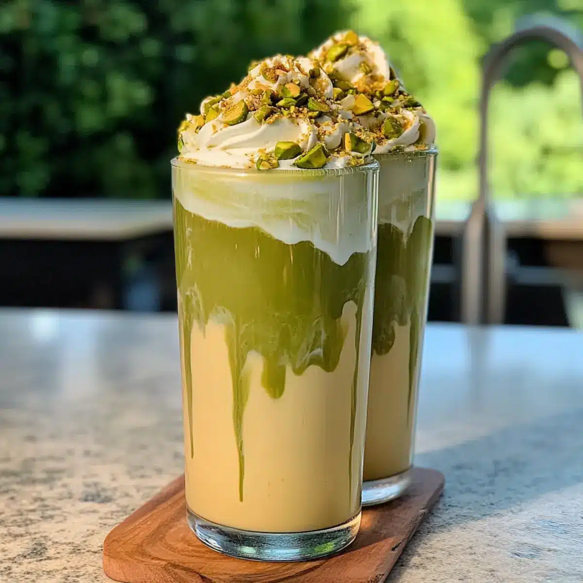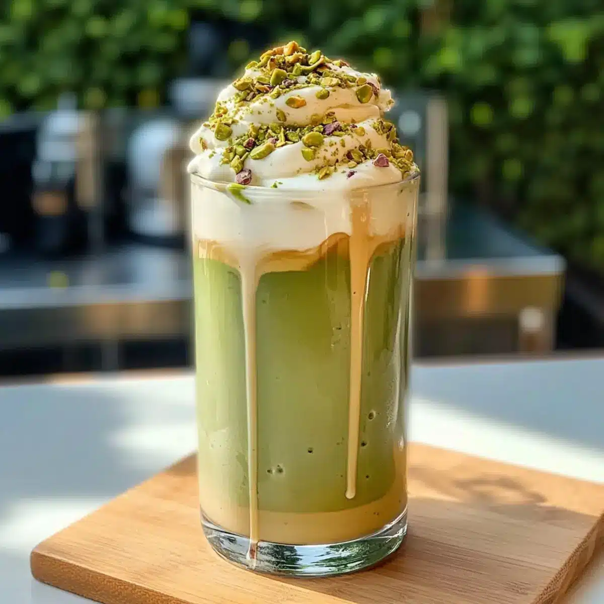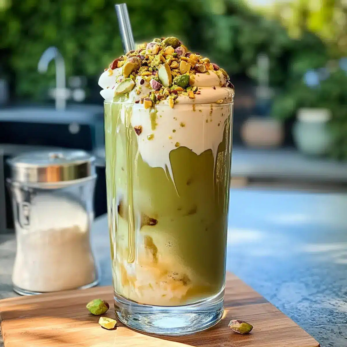 Genieße diese erfrischende Eisige Pistazienlatte, die perfekt für heiße Sommertage geeignet ist!